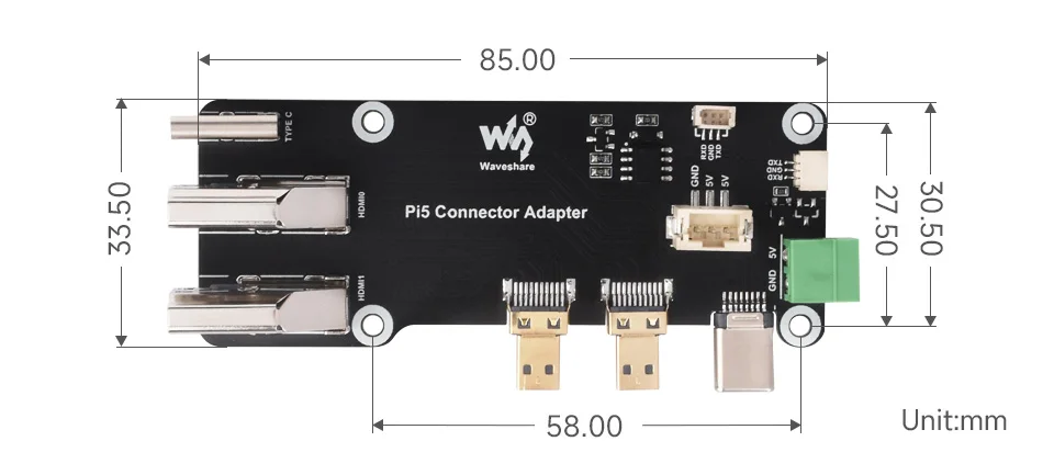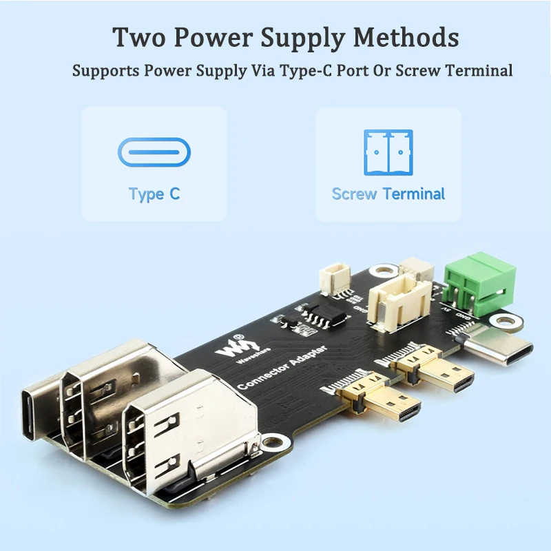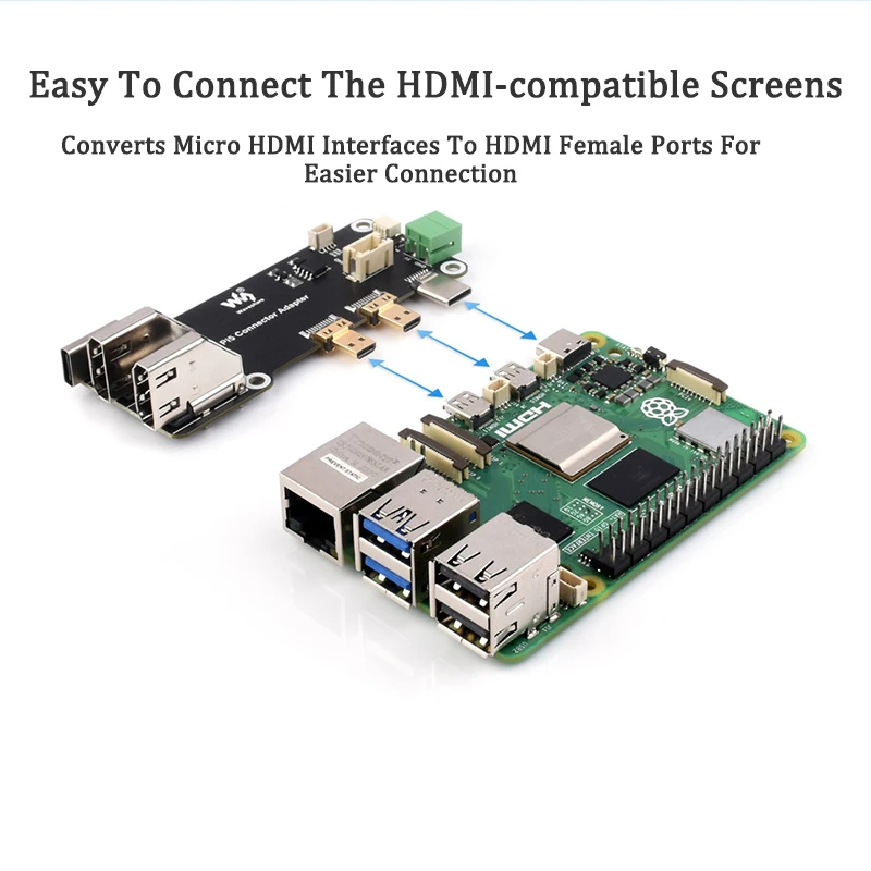Placa adaptadora multifuncional compatível com micro hdmi para hdmi, dois métodos de suporte de fonte de alimentação, saídas duplas 4k para raspberry pi 5/4b