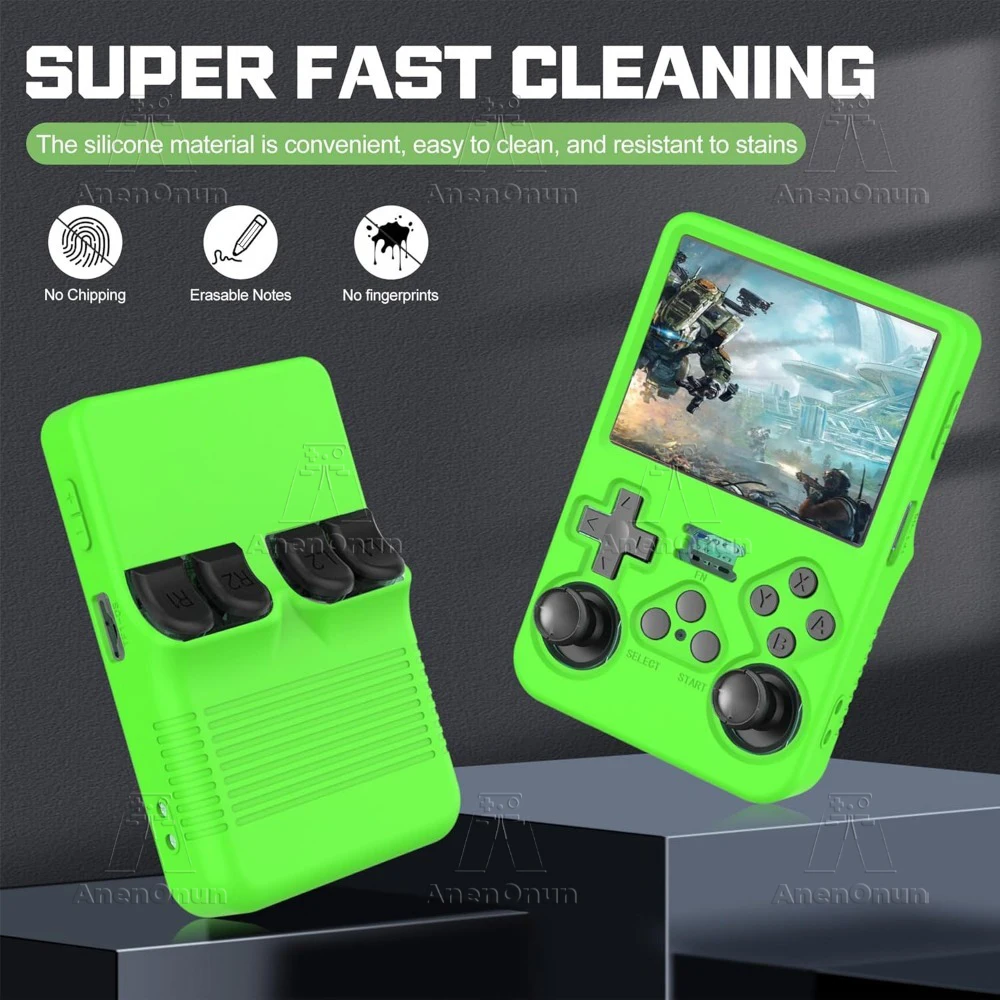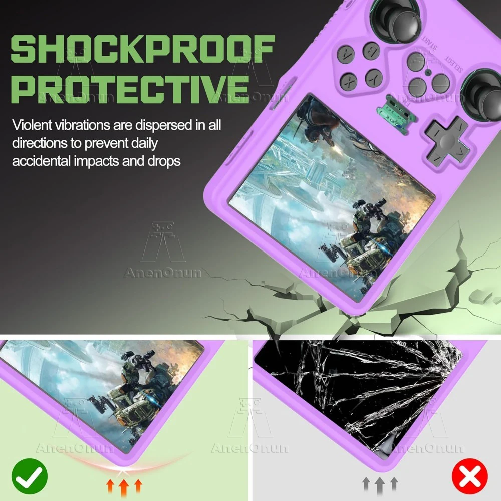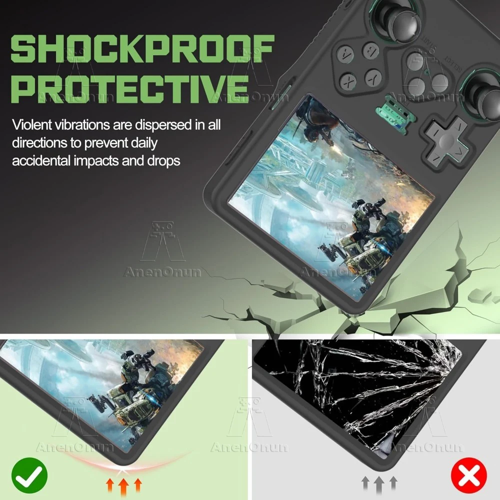 ????Corte preciso?-Esta capa de silicone foi projetada para caber no seu dispositivo com precisão e segurança, com aberturas cortadas com precisão para todas as portas e botões para que você possa acessar facilmente todas as funções do R36S.