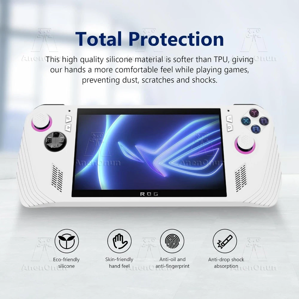 ?Proteção Completa?-Adequado para ROG Ally. Feito com material de silicone absorvente de choque, flexível e anti-riscos, este caso protege o seu dispositivo de colisões diárias, gotas, quedas, arranhões, poeira e impressões digitais.