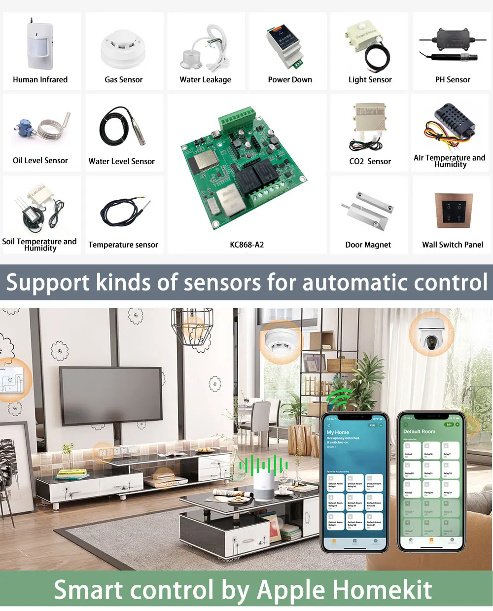 Placa de relé KC868-A2 esp32 4G baseada no chip wifi ESP32, muitos recursos de hardware para você usar. Suporta módulo GSM para SMS, chamada de voz, comunicação GPRS. Módulo do apoio 4G SIM7600 ou módulo 2G SIM800L. Use SMS ou ligue para ligar/desligar o relé será muito fácil para a automação residencial DIY. Você pode escrever qualquer código por Arduino IDE para ESP32 wifi/bluetooth/Ethernet RS485. Nós forneceremos o código de demonstração para diferentes amostras. Todos podem modificar e alterar o código do seu próprio projeto de automação residencial inteligente. Ele suporta o uso por ESPHome para assistente de casa ou firmware tasmota para automação residencial inteligente DIY.