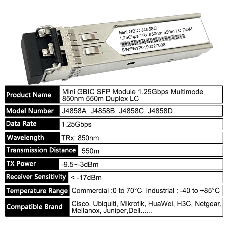 Número do modelo: J4858C,J4858D Mini-GBIC-SX SFP Module