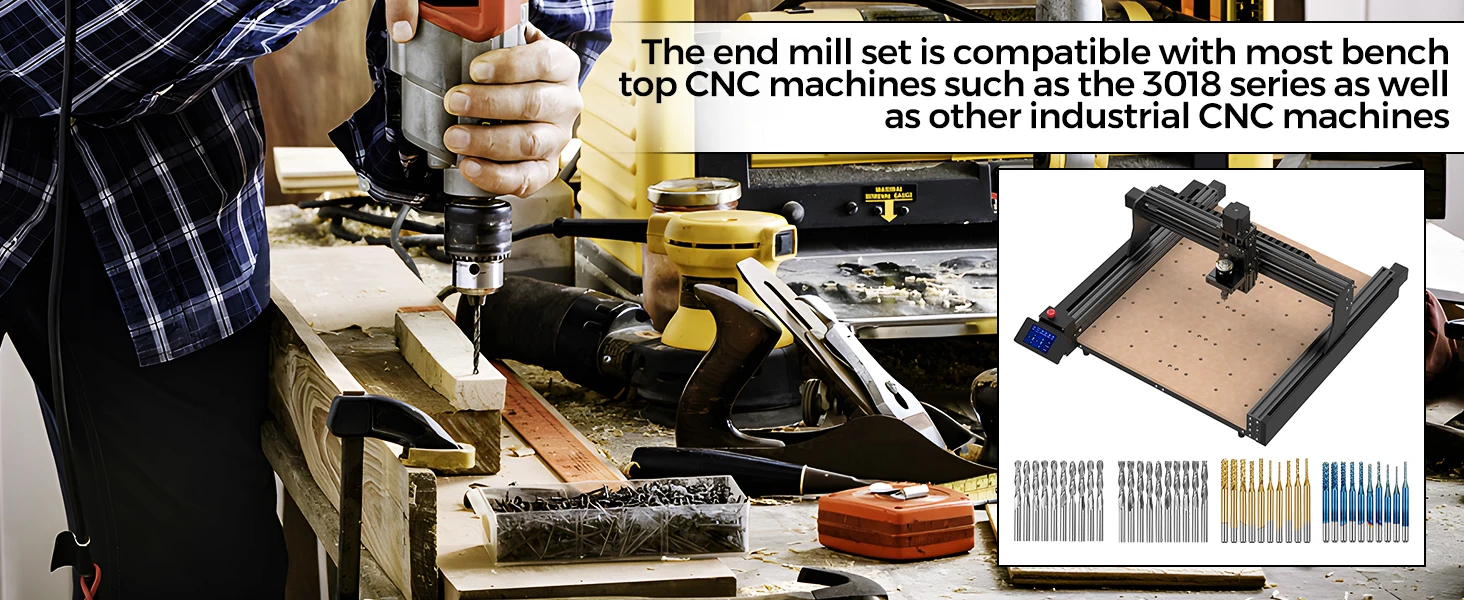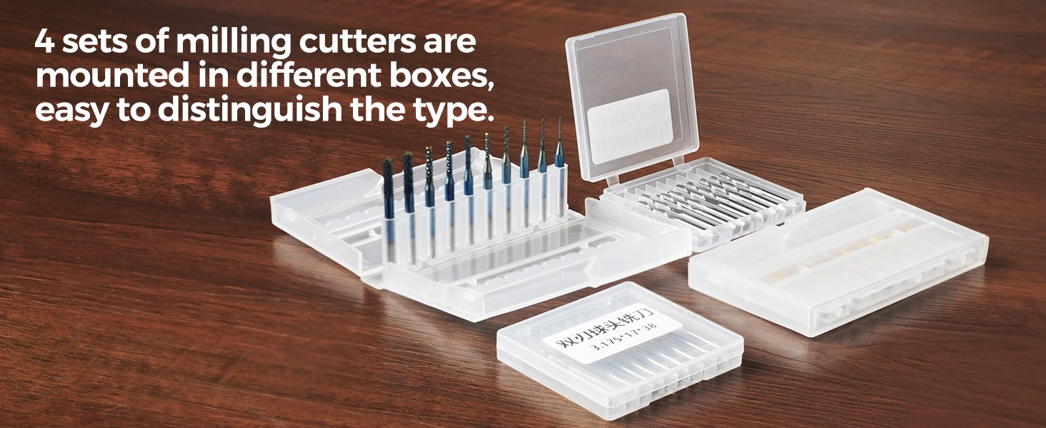 Alta dureza, alta resistência ao desgaste, alta resistência.Têm resistência à flexão e resistência ao desgaste suficientes.Pode ser usado com 1610, 3018, 3018pro e outras máquinas de gravação.Vantagem: Ponta afiada, fresagem, furo e borda da placa, superfície limpa, limpa, sem falhas.Faixa de processamento: PCB, SMT, CNC, moldes, plástico, alumínio e outras peças de precisão.Especificação:Material: Carboneto CementadoDiâmetro da haste: 3,175 mm (1/8 polegadas)Comprimento: 38mmIncluir:Fresa final 40*1/8"10pcs bola nariz bit 2 flauta upcut:3,175 mm (SD) x 2 mm (CED) x 17 mm (CEL) x 38 mm (OAL)10 peças de broca espiral de nariz plano Upcut de 2 flautas:3,175 mm (SD) x 3.175 mm (CED) x 17 mm (CEL) x 38 mm (OAL)10 peças de brocas de roteador CNC de revestimento de titânio:CED: 0,8-3.0 mm (0,8, 1,0, 1,2, 1,4, 1,6, 1,8, 2.0, 2,2, 2,4, 3,17 mm)3,175 mm (SD) x 12 mm (CEL) x 38 mm (OAL)10 peças de brocas de roteador CNC de titânio:CED: 0,8-3.0 mm (0,8, 1,0, 1,2, 1,4, 1,6, 1,8, 2.0, 2,2, 2,4, 3,17 mm)3,175 mm (SD) x 12 mm (CEL) x 38 mm (OAL)Parâmetro de bits de gravação de fresa final de 40 unidades:Comprimento total (OAL): 38 mm; Diâmetro da haste (SD): 3,175 mmO uso de material de metal duro de grão ultrafino com bom desempenho de fresagem e corte, garante alta eficiência de trabalho.Alta dureza, alta resistência ao desgaste, alta resistência.Têm resistência à flexão e resistência ao desgaste suficientes.Borda de corte afiada, fresagem, furo e borda da placa, superfície limpa, arrumada, sem falhas.APLICAÇÃO: a fresa de topo é uma boa ferramenta de broca, furação e fresagem para PCB, SMT, CNC, Molde, plástico, fibra de carbono, madeira, placa de circuito impresso, processamento de outras peças de precisão.