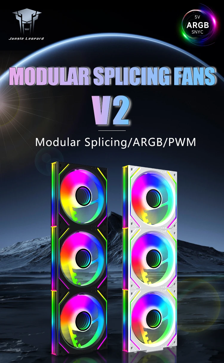 Magic Block Free Splicing V2 120mm Ventilador da caixa do computador do PC 3-em-1 Mute 3PIN Radiator Cooler 12V Ventilador do chassi 5V ARGB Divine Light