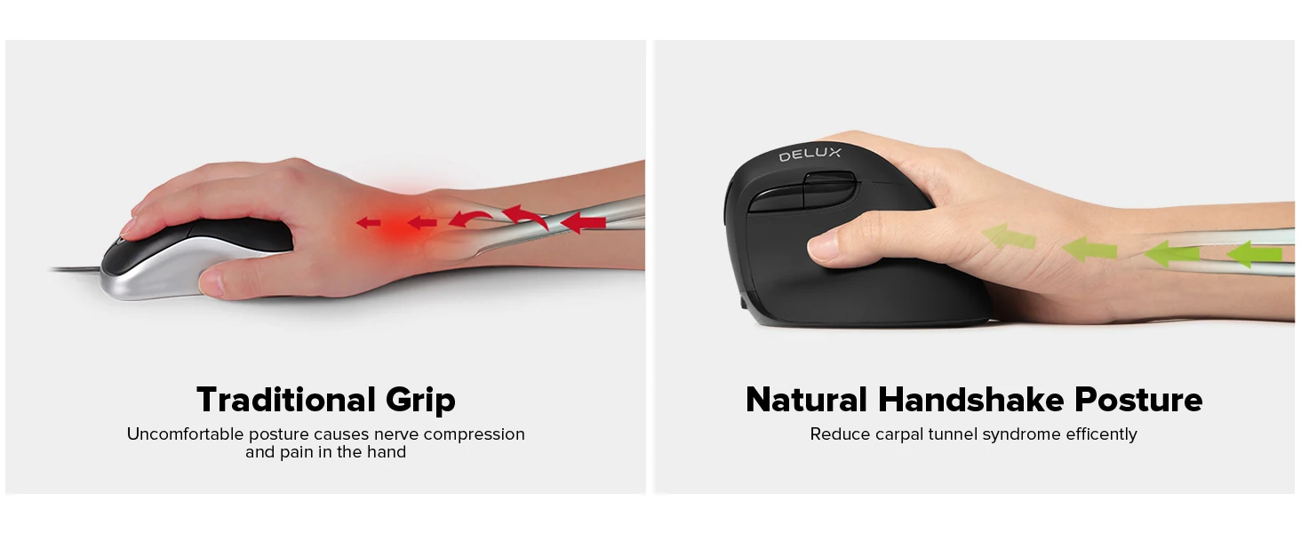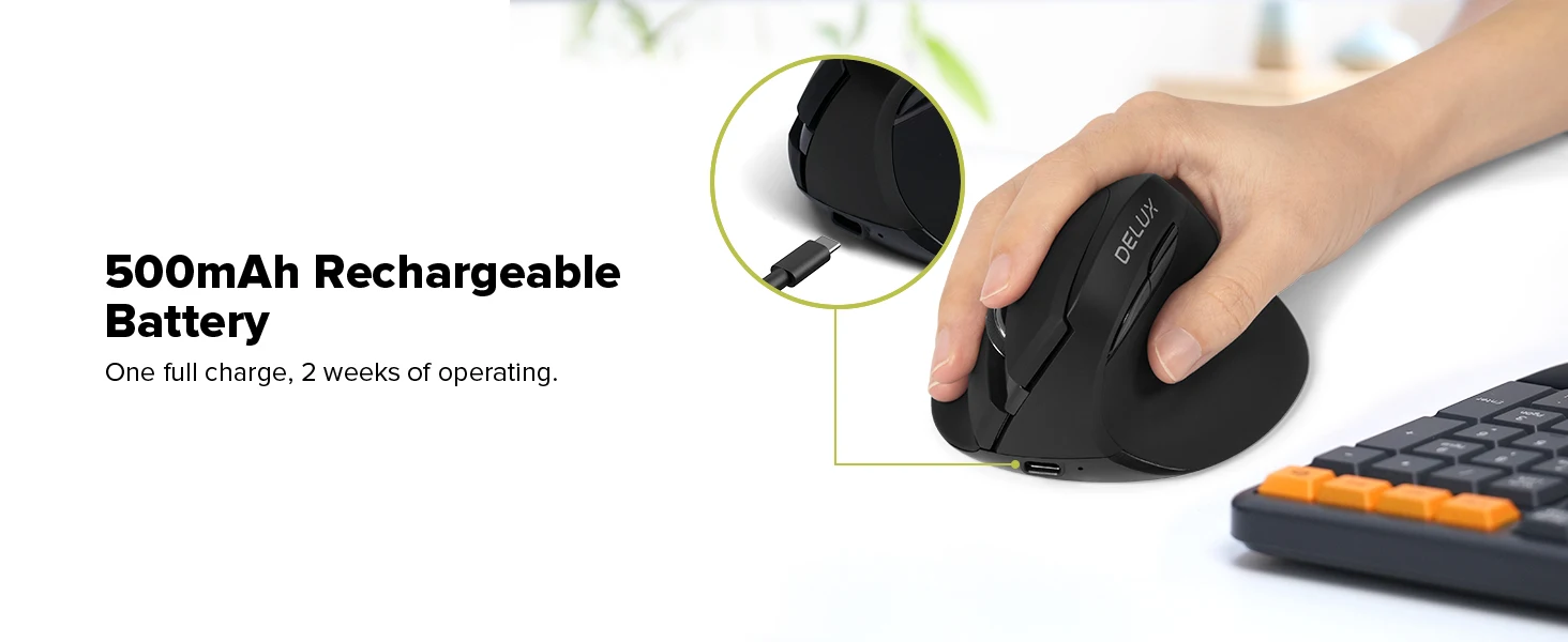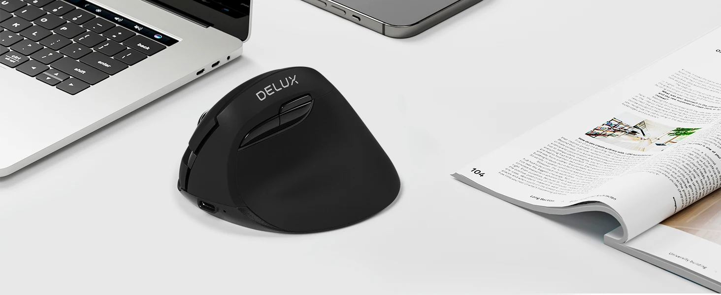Mini mouse sem fio vertical ergonômico Delux M618