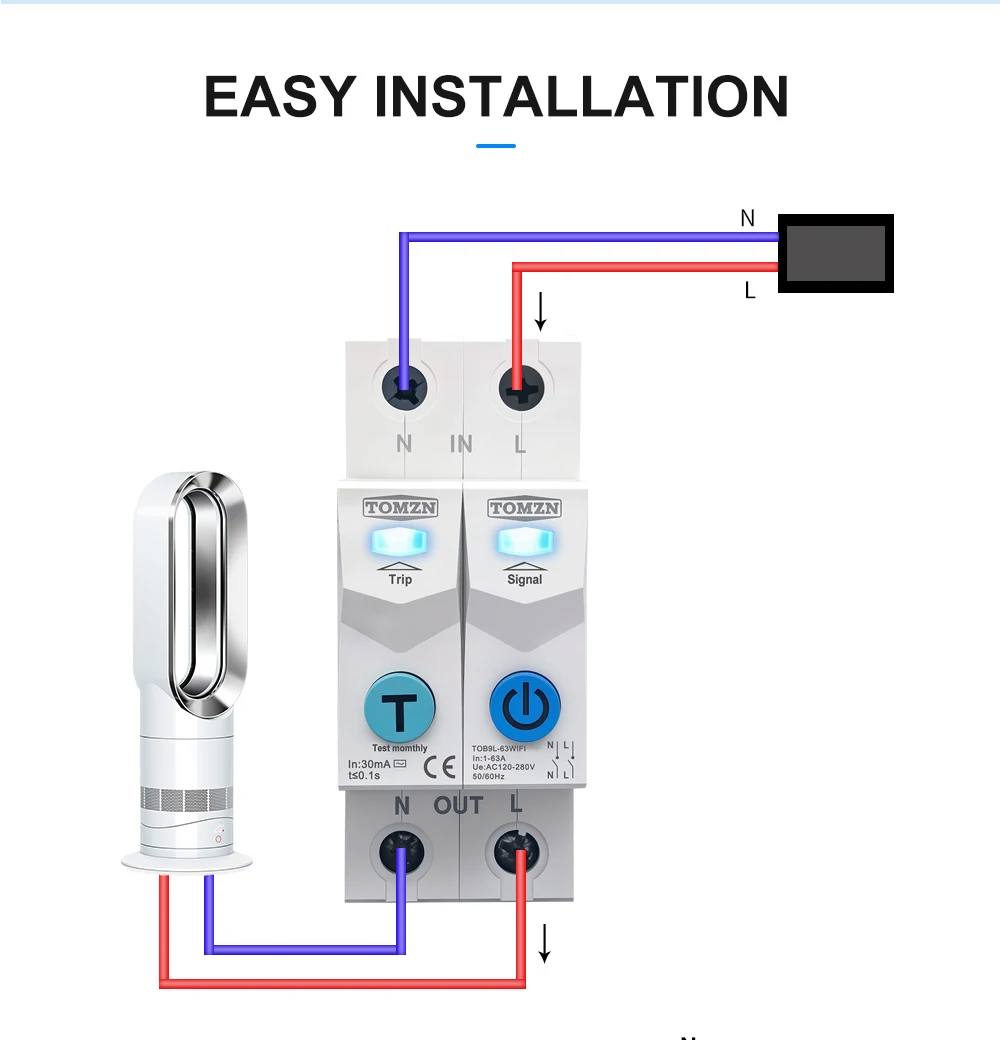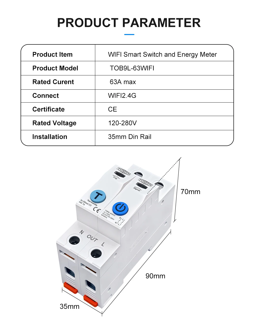 TOB9L-63WIFI pode cortar L e N ambos, com proteção contra vazamento, SEM controle de temperatura.
