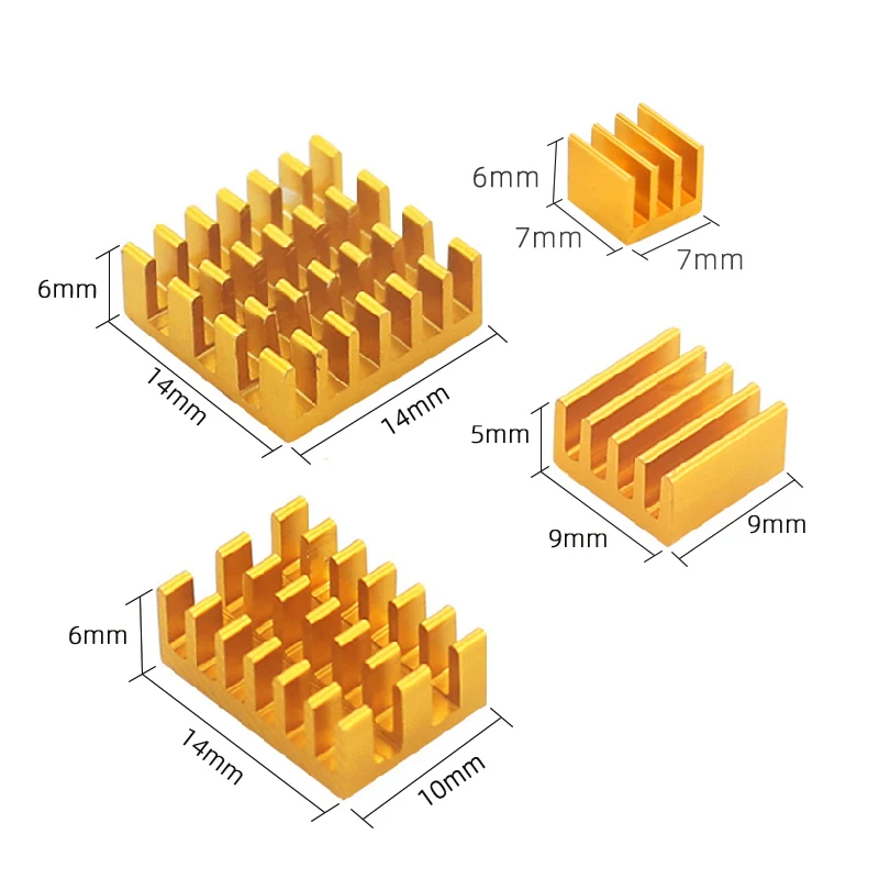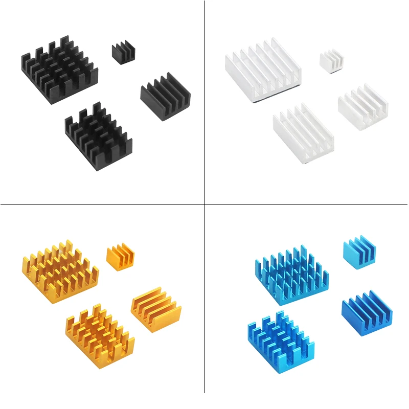 Este é o conjunto de dissipador de calor de alumínio para Raspberry Pi 4 Modelo B.Ele contém 4 peças de dissipador de calor, usado para CPU, RAM, módulo USB e módulo de rede em PCB.