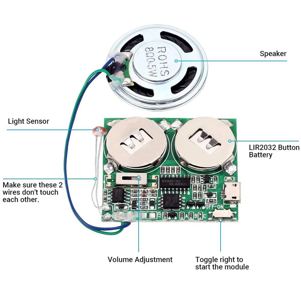 Gravação de Voz Módulo 8M Controle de Luz DIY Kits Carregável/Ajuste De Volume USB Music Player Para Cartões Gift Box