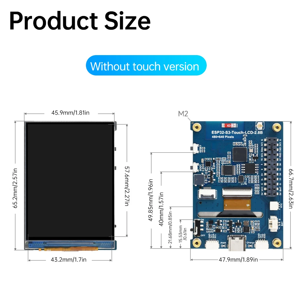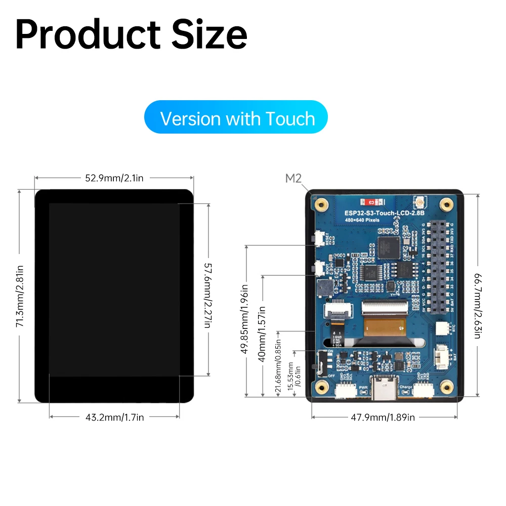 ESP32-S3-Touch-LCD-2.8B com resolução de 480×640/240 × 320 Tela capacitiva IPS Placa de desenvolvimento WIFI Bluetooth