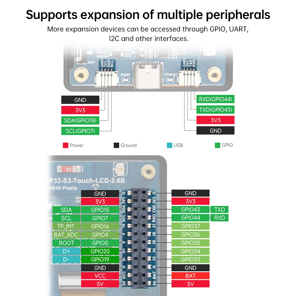 Estilo 2: ESP32-S3-LCD-2.8B/ESP32-S3-Touch-LCD-2.8B: