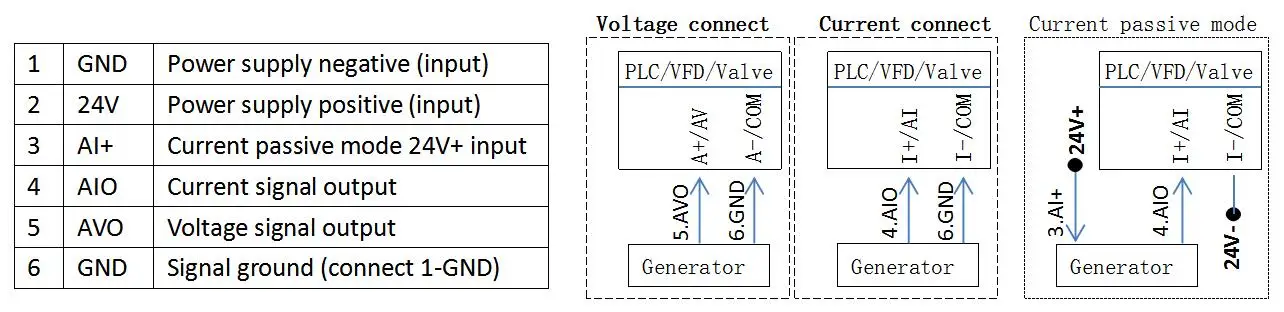 2.3 Modo passivo atual: o ThePIN3-AI + é conectado externamente a 24V + e depois a saída de 4-AIO para controlar a corrente externa de 24V. Nosso medidor é equivalente a uma resistência ajustável; Portanto, é chamado de modo passivo.