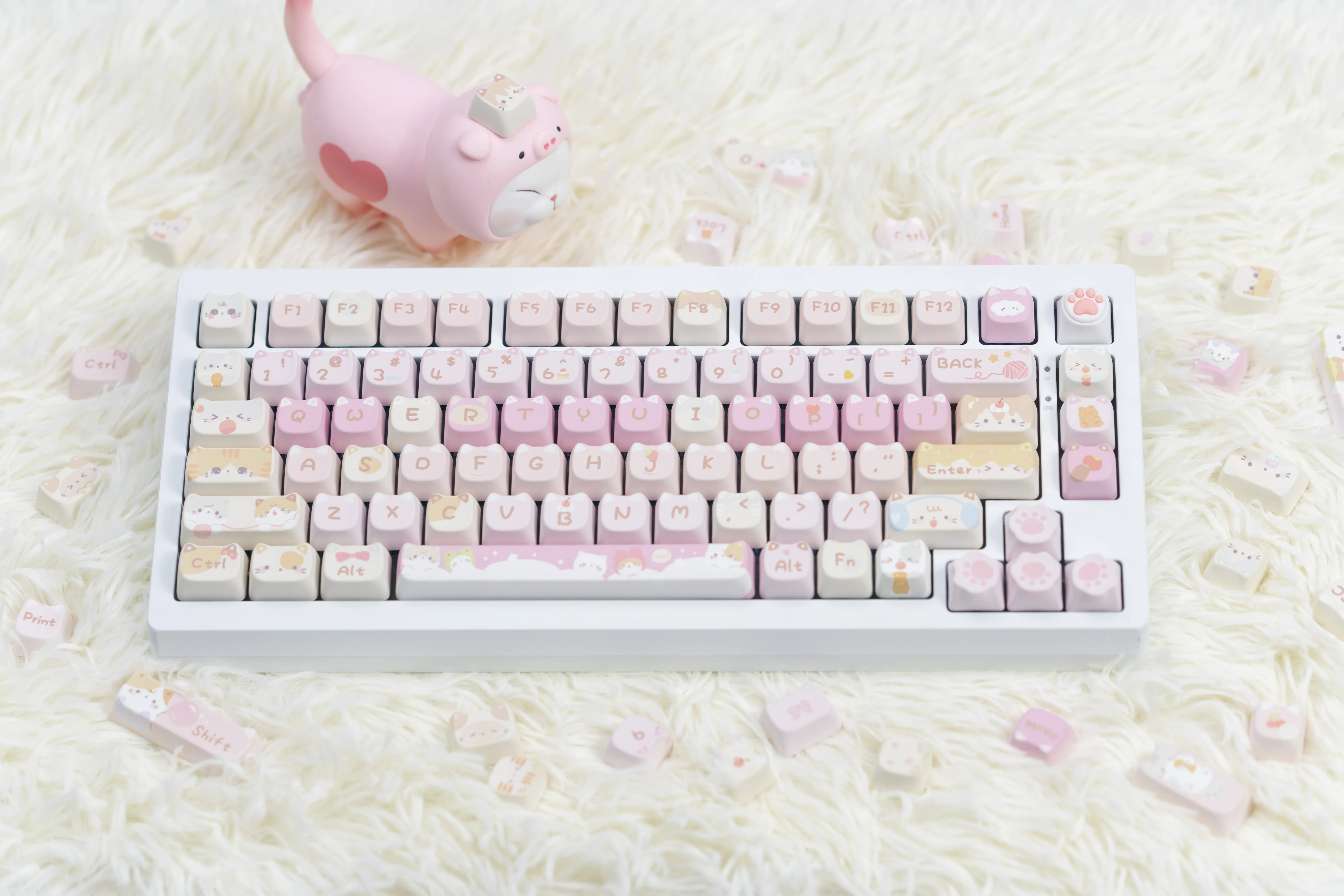 A altura exclusiva do perfil MAO apresenta uma nova experiência de digitação, adaptada para conforto ergonômico e prazer estético.Delicie-se com uma paleta de pastéis calmantes, com cada tecla apresentando um adorável motivo de gato, desde as expressões caprichosas de gatinhos lúdicos até rostos felinos serenos e sábios.A atenção aos detalhes é evidente, pois até a tecla 'Enter' é graciosada com um gato relaxante, convidando você a pausar e sorrir em seu dia agitado.