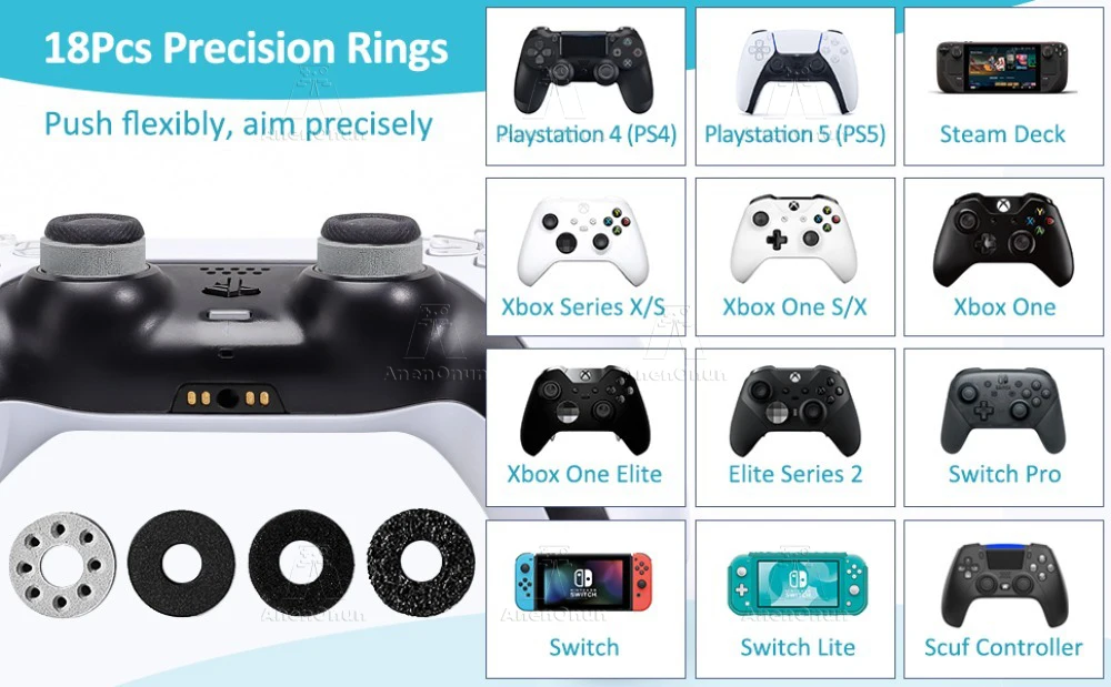 ?Amplamente compatibilidade?- Os anéis de precisão se ajustam perfeitamente ao controlador sem fio ROG Ally/Legion Go/SCUF Instinct Pro/Luna, controlador sem fio DualSense Edge, Play station 4 (PS 4), Play station 5 (PS 5), Steam Deck, Xbox Series X/S, Xbox One S/X, Xbox One Elite, Elite Series 2, Switch Pro, Switch, Switch Lite, Controller Scuf.Projete para sua vida de jogo diferente.
