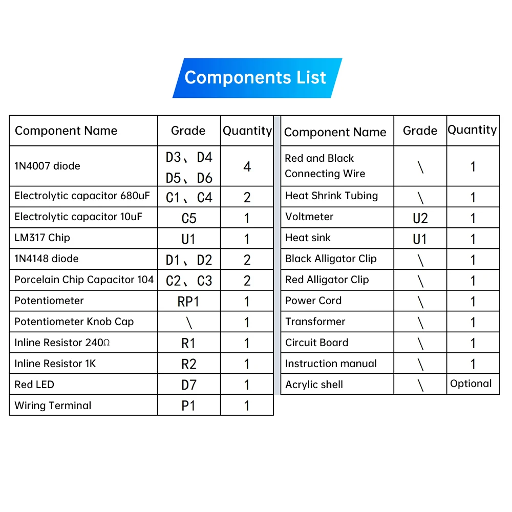 2. Designed for electronics enthusiasts and students, through hands-on assembly and welding, practice theoretical knowledge, deepen the understanding of the principle of DC regulated power supply, enhance the welding skills and circuit debugging capabilities