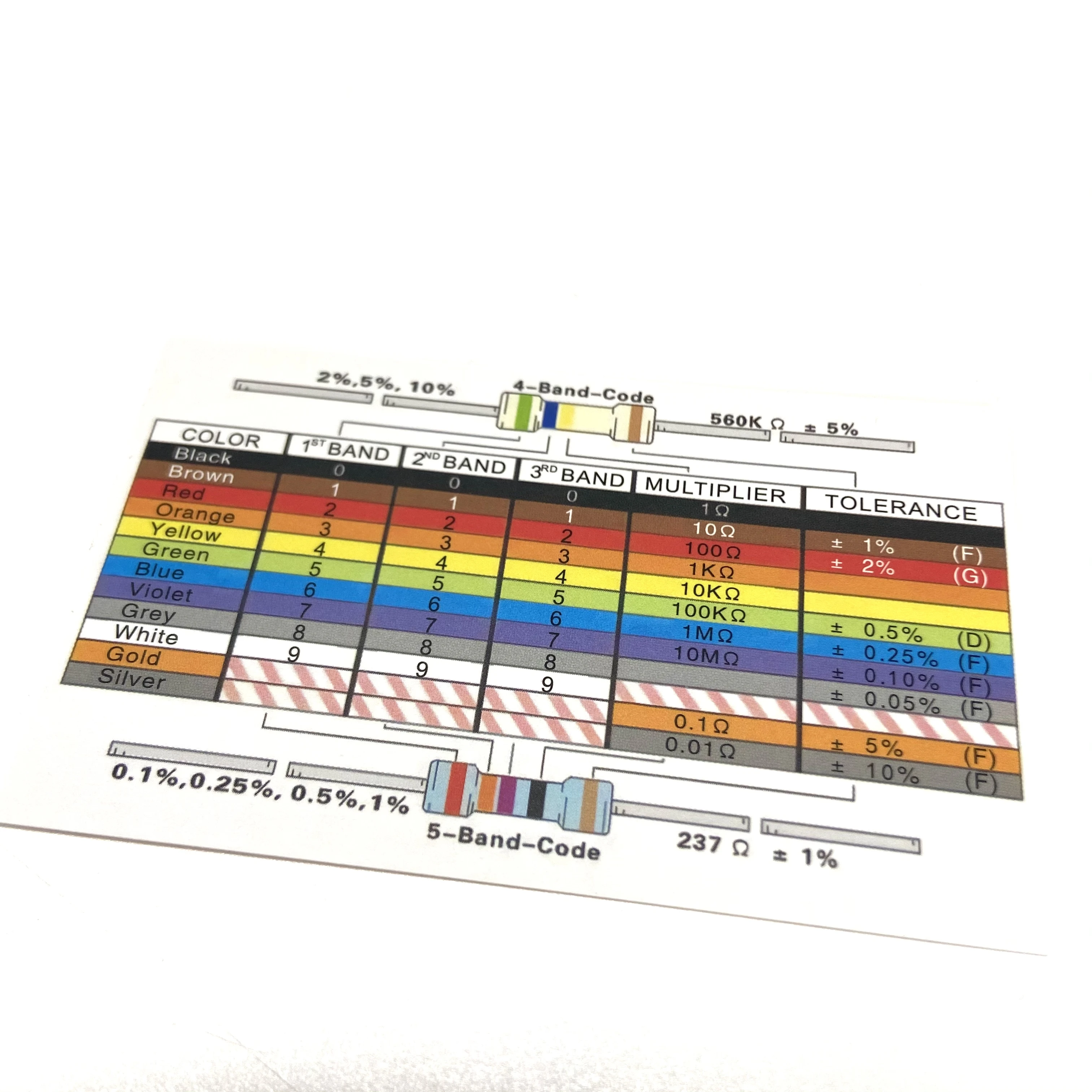 Envie um cartão de correspondência de cores de resistência