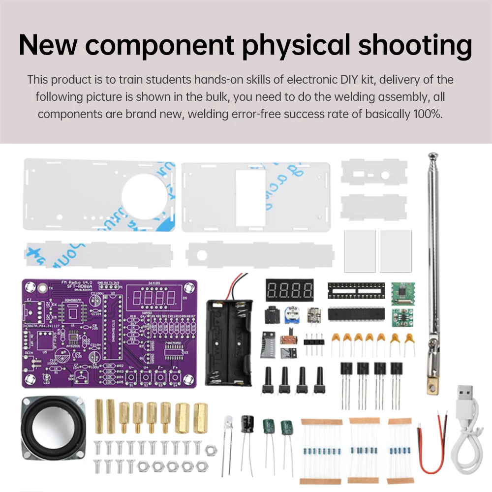 Kit eletrônico diy kit de solda de rádio fm 87,5mhz ~ 108mhz display de tubo digital rádio fm kit pcb de aprendizagem de solda eletrônica