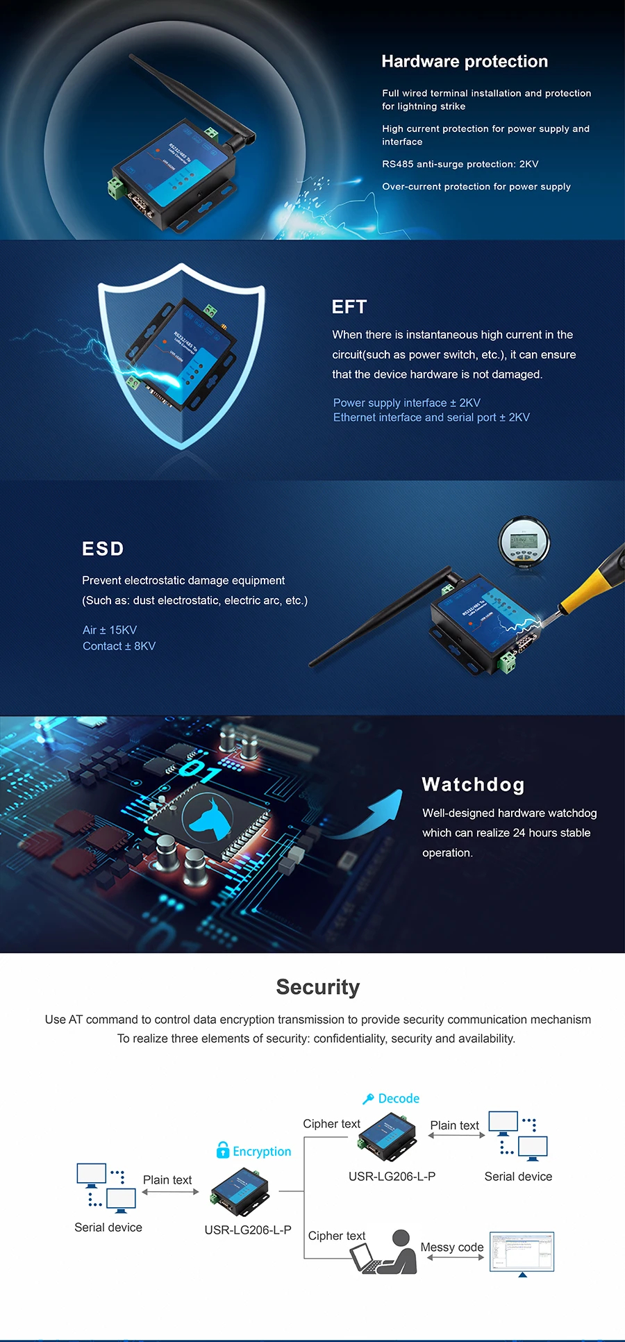 Use o comando AT para controlar a transmissão de criptografia de dados para fornecer mecanismo de comunicação de segurança.