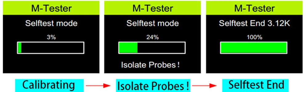 Curto-circuito três soquetes de teste, pressione rapidamente o botão multifuncional e o testador calibrará automaticamente.