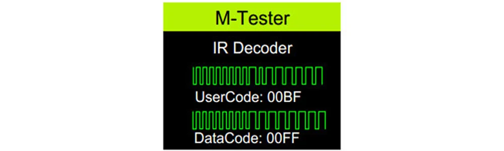 Se a decodificação falhar ou a decodificação falhar, o código do usuário e o código de dados não poderão ser exibidos. Neste momento, se você estiver na interface do testador, não poderá inserir a interface de decodificação infravermelha. Se você estiver na interface de decodificação infravermelha, as últimas informações de decodificação bem-sucedidas ainda serão exibidas.