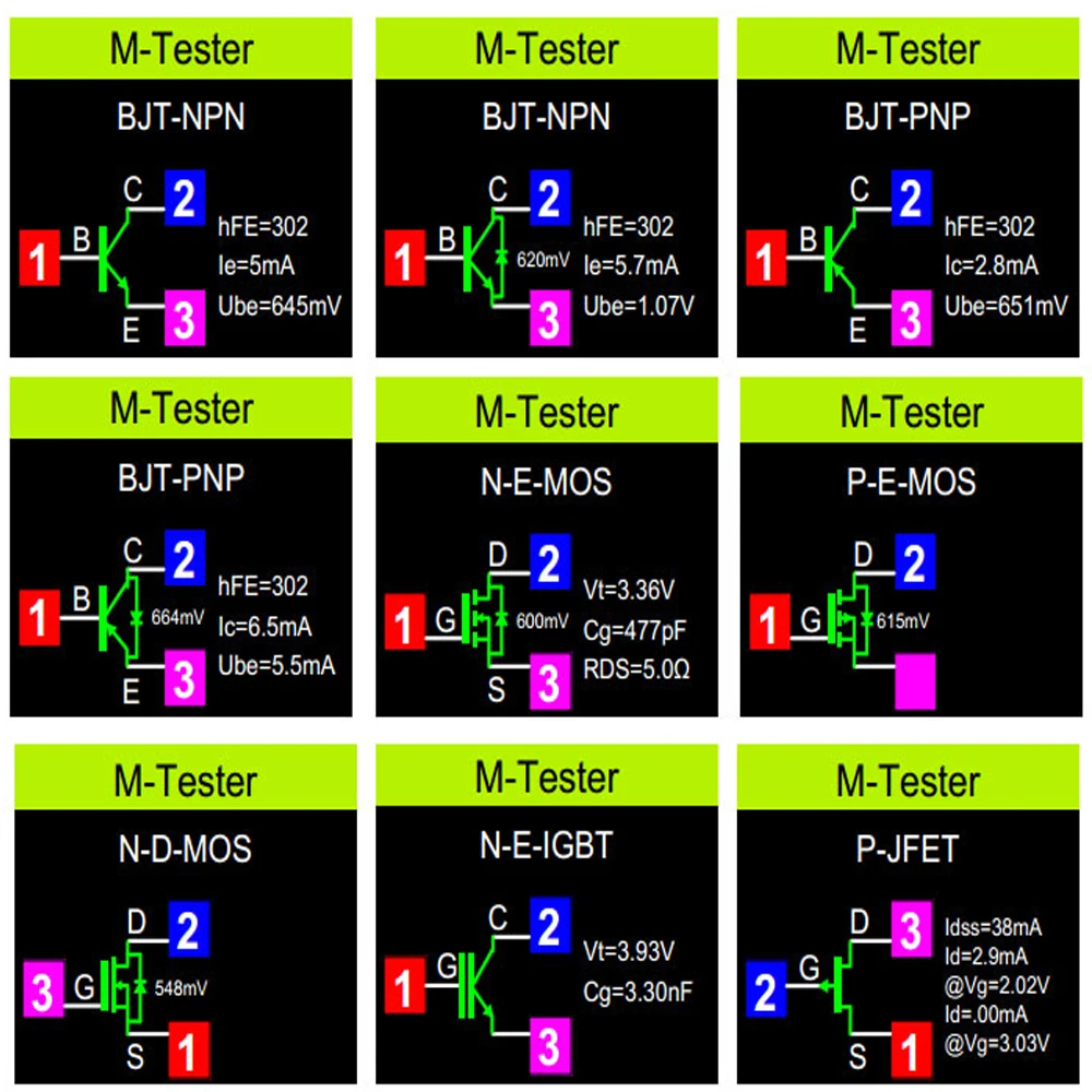 Detecção automática de bipolartransistores NPN e PNP. N-channel e P-chmnnel