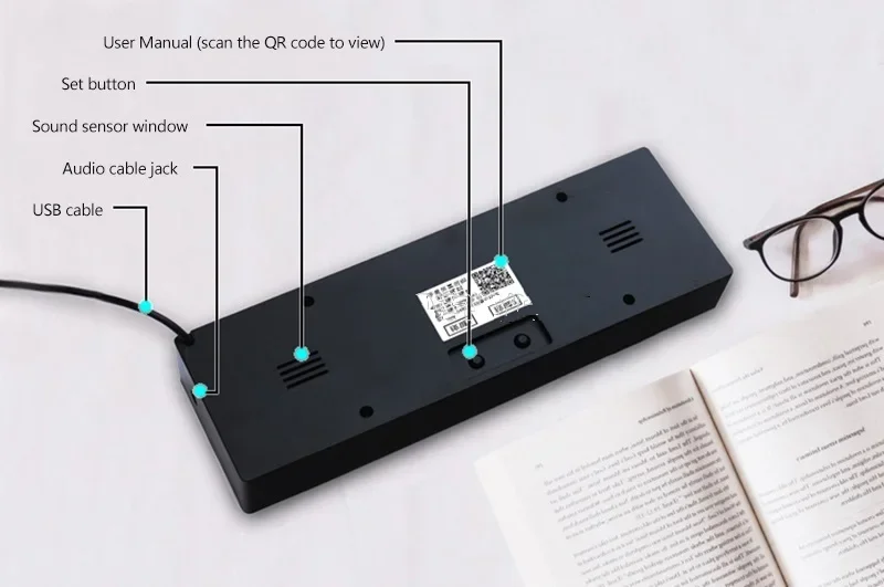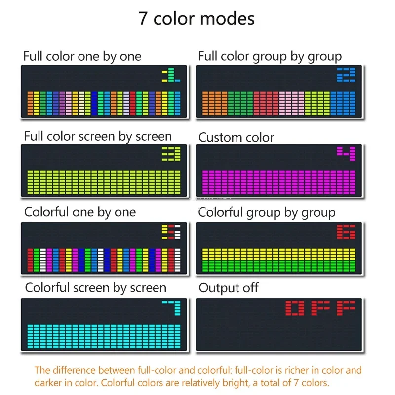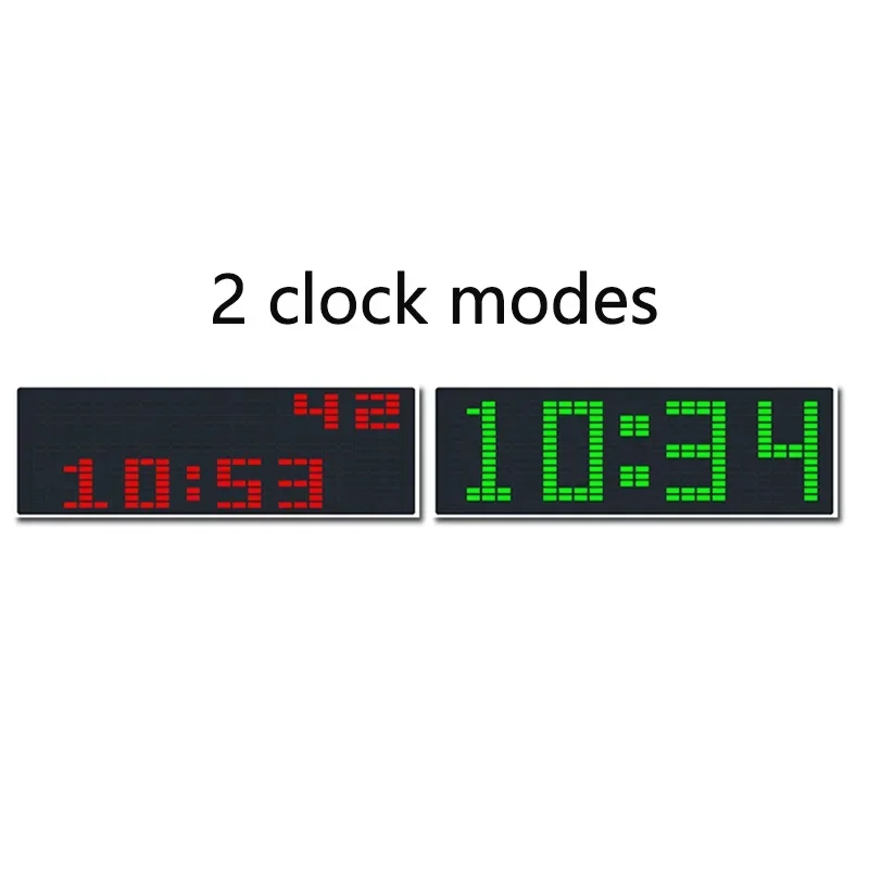 12 modos de exibição, 7 cores totais, 8 configurações de brilho, 4 modos de exibição do tempo, 1 modo de exibição respiratória, 3 funções do despertador. -Até 84 efeitos.