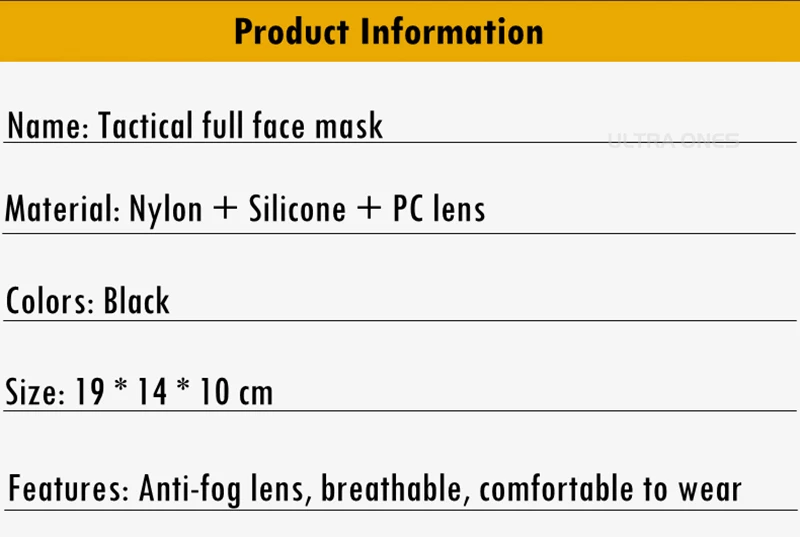 Package include: 1* Tactical full face mask