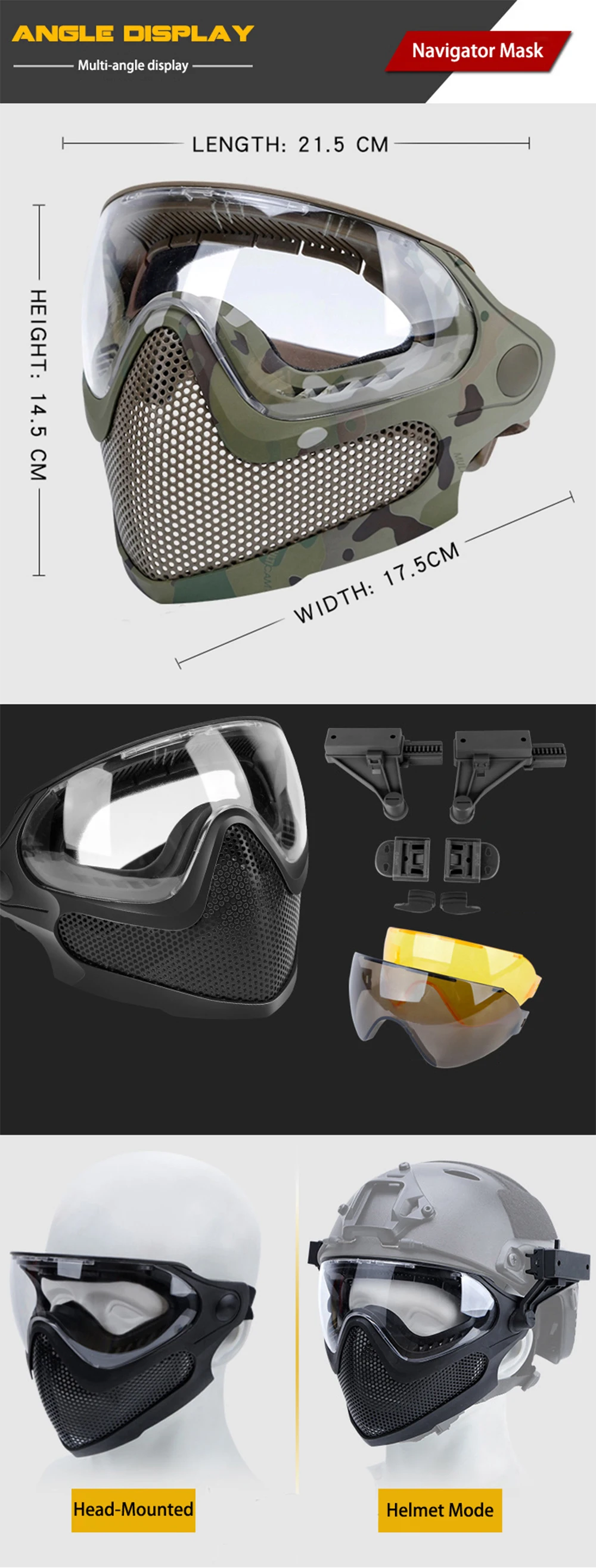 Máscara facial completa tática paintball airsoft cs tiro malha de aço respirável cabeça protetora/capacete usando máscaras equipamento de caça