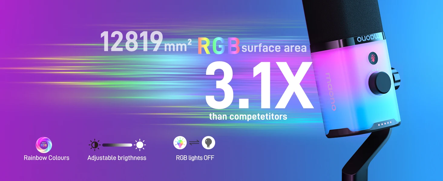 MAONO PD100X Gaming MIC, Microfone Dinâmico USB/XLR com Software EQ RGB, Mudo, Fone de ouvido, MIC para PC Gamer Streaming Podcast