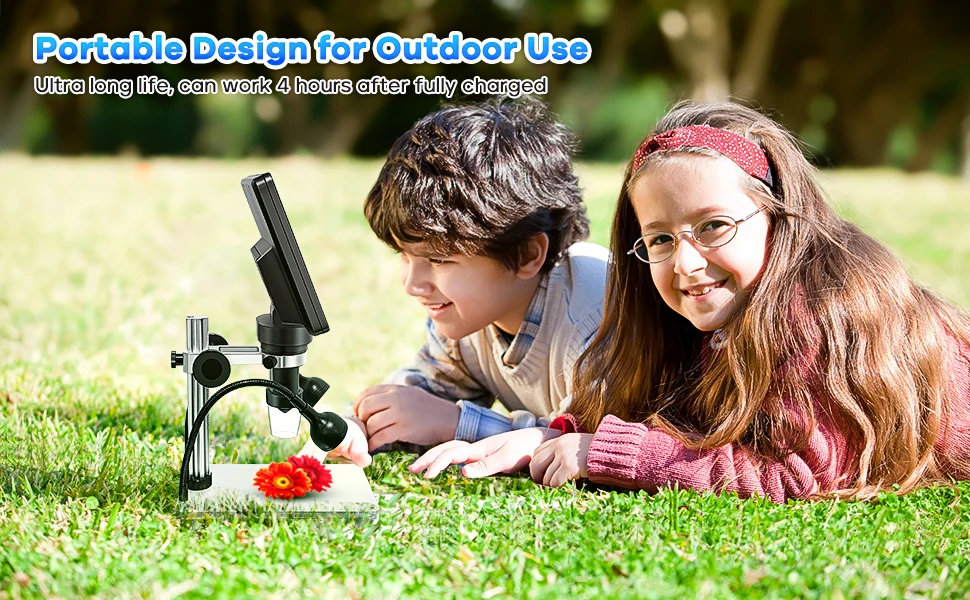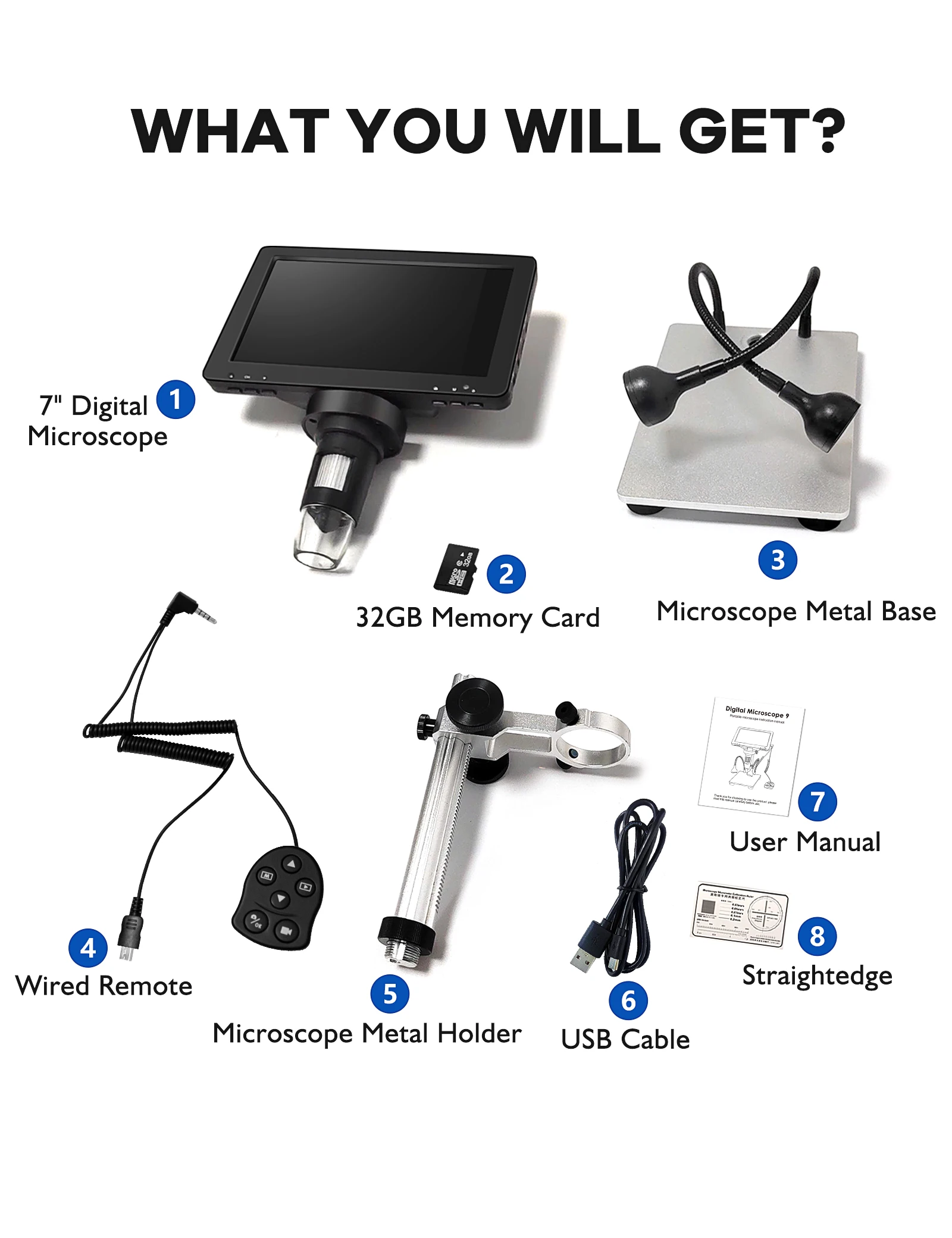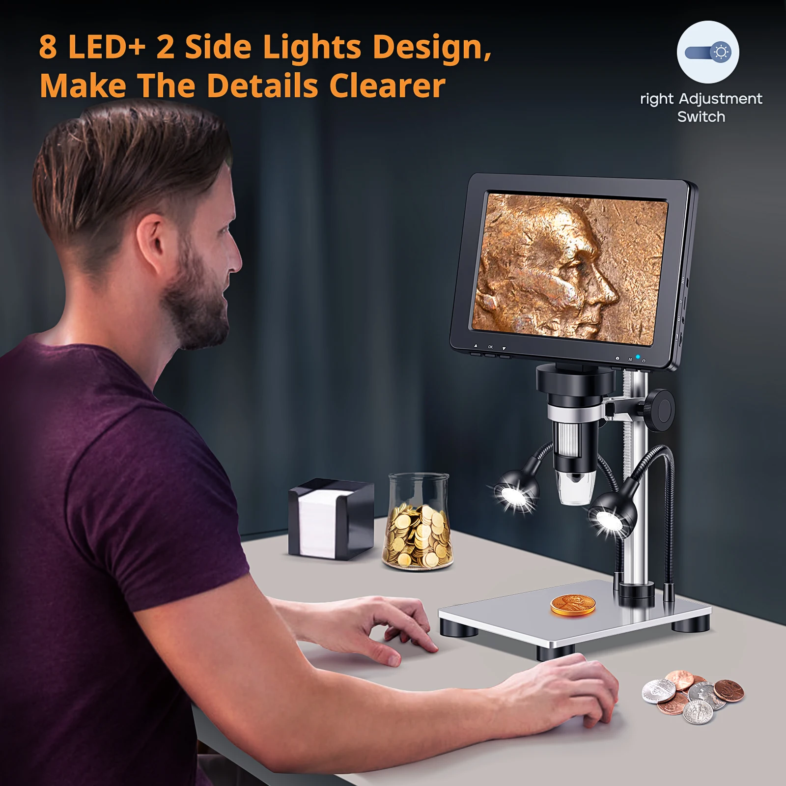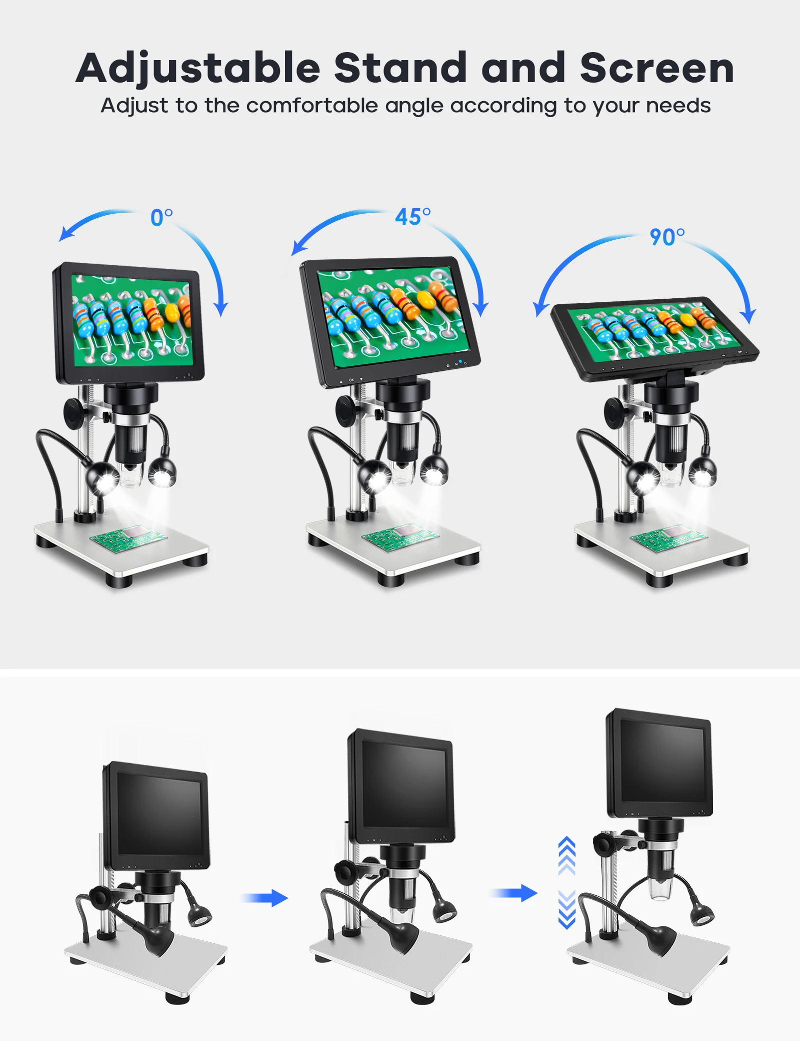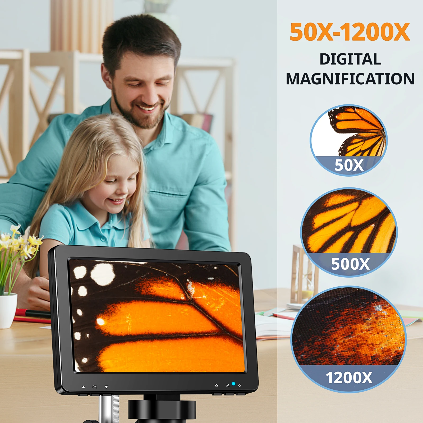 RIEVBCAU Tela LCD HD grande de 7 polegadas, ampliação de até 1200x fornece um amplo campo de visão para fácil visualização.A tela grande permite ajustar rapidamente a imagem e visualizar instantaneamente. A tela grande com ângulo ajustável proporcionará uma melhor experiência visual.