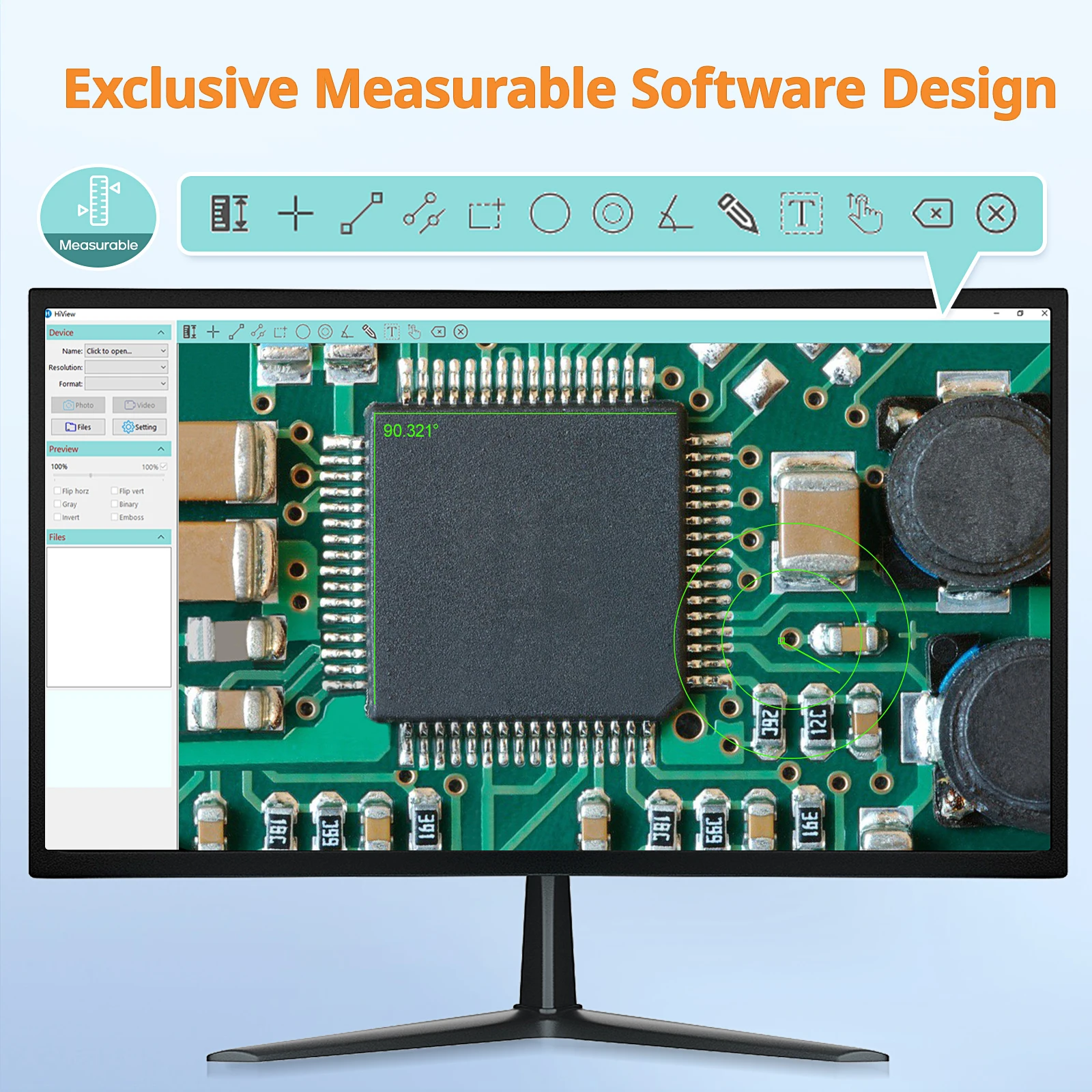 RIEVBCAUO software de câmera de microscópio pode medir com flexibilidade dimensões, ângulos, áreas, perímetros, raios, etc.Agora atualize para exibir os seguintes efeitos de imagem profissionais: Flip horz, Flip vert, Grey, Binary, Invert, Emboss. Tornando o trabalho mais preciso e eficiente!