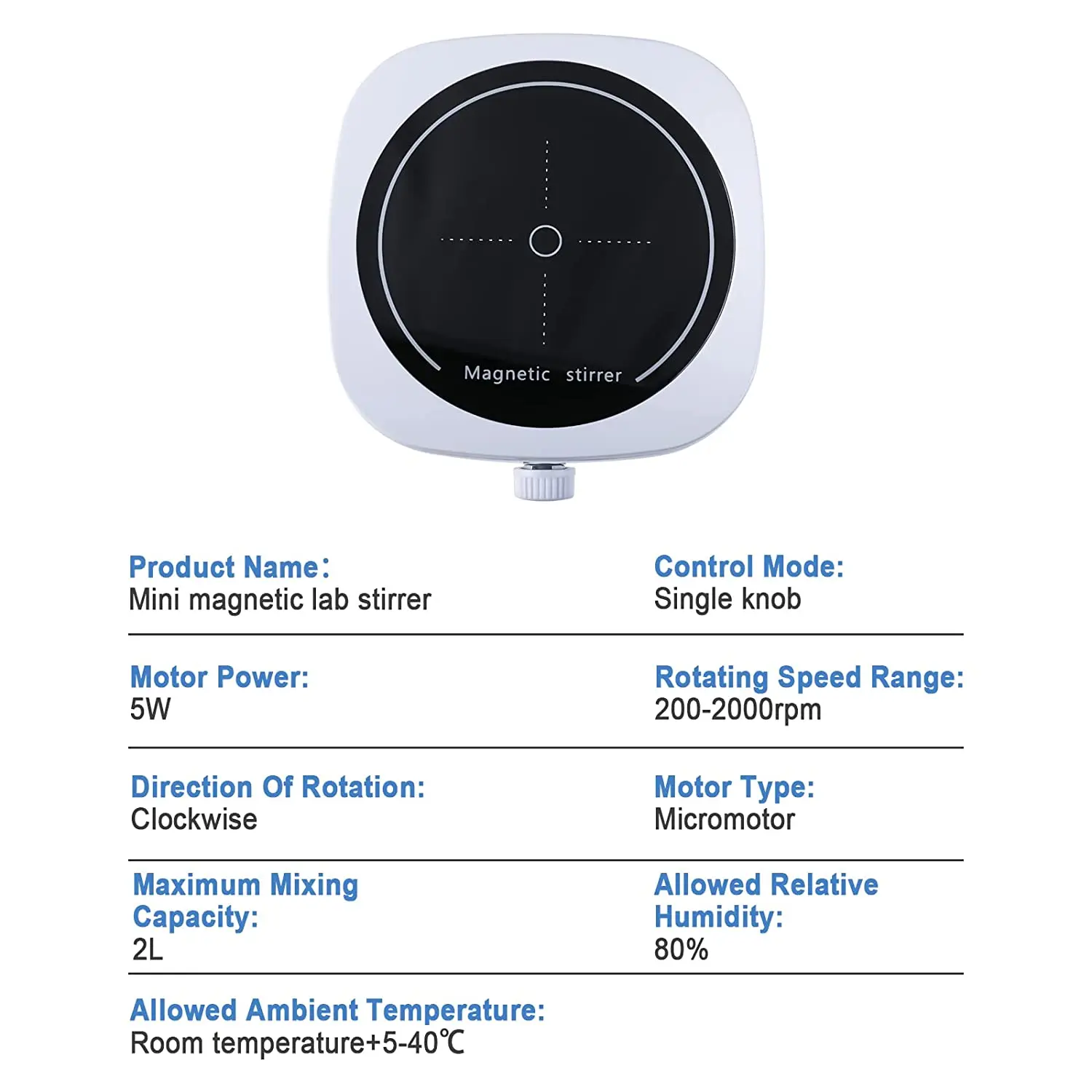 ?EXCELENTE CAPACIDADE DE AGITAMENTO?O mini agitador magnético de laboratório tem uma faixa de velocidade de 200-2000 RPM e a velocidade pode ser facilmente controlada pelo botão.