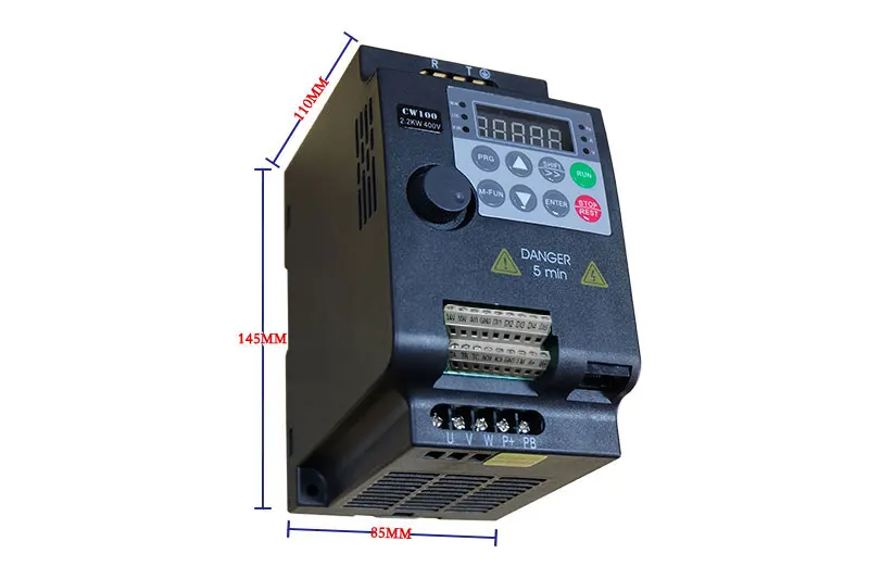 3. Built-in brake unit (for connecting brake resistance).4. PID function (Constant pressure water supply).5. Multi-stage run.6. RS485 communication protocol by PLC.7. Vector control, low frequency high torque.8. Optional external control panel(not included in the package).