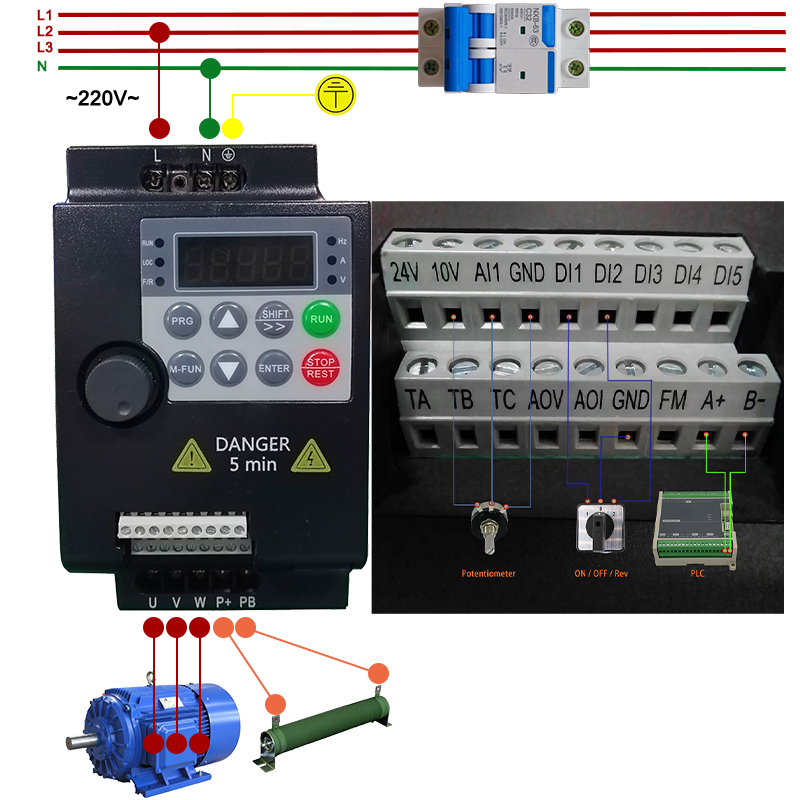 2. Adjust speed by panel potentiometer or external potentiometer.
