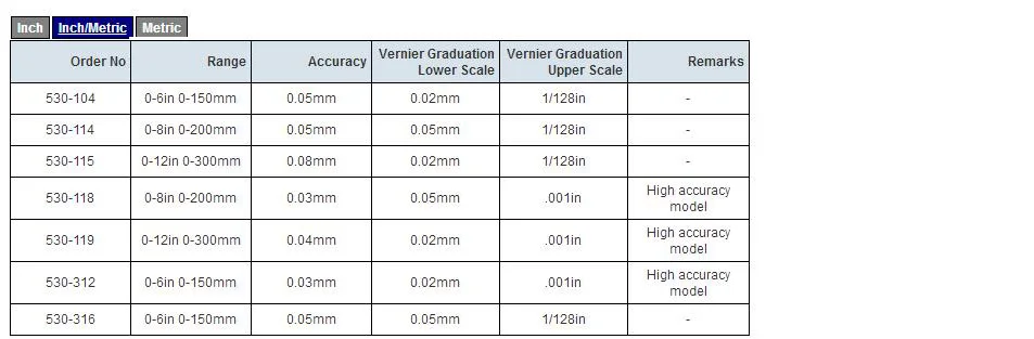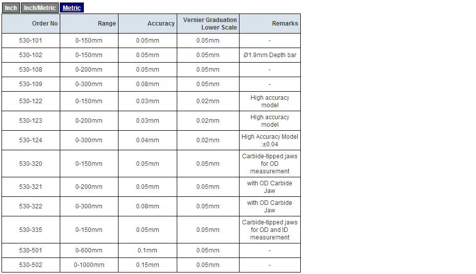 Paquímetros tipo mandíbula com ponta de metal duro também estão disponíveis.