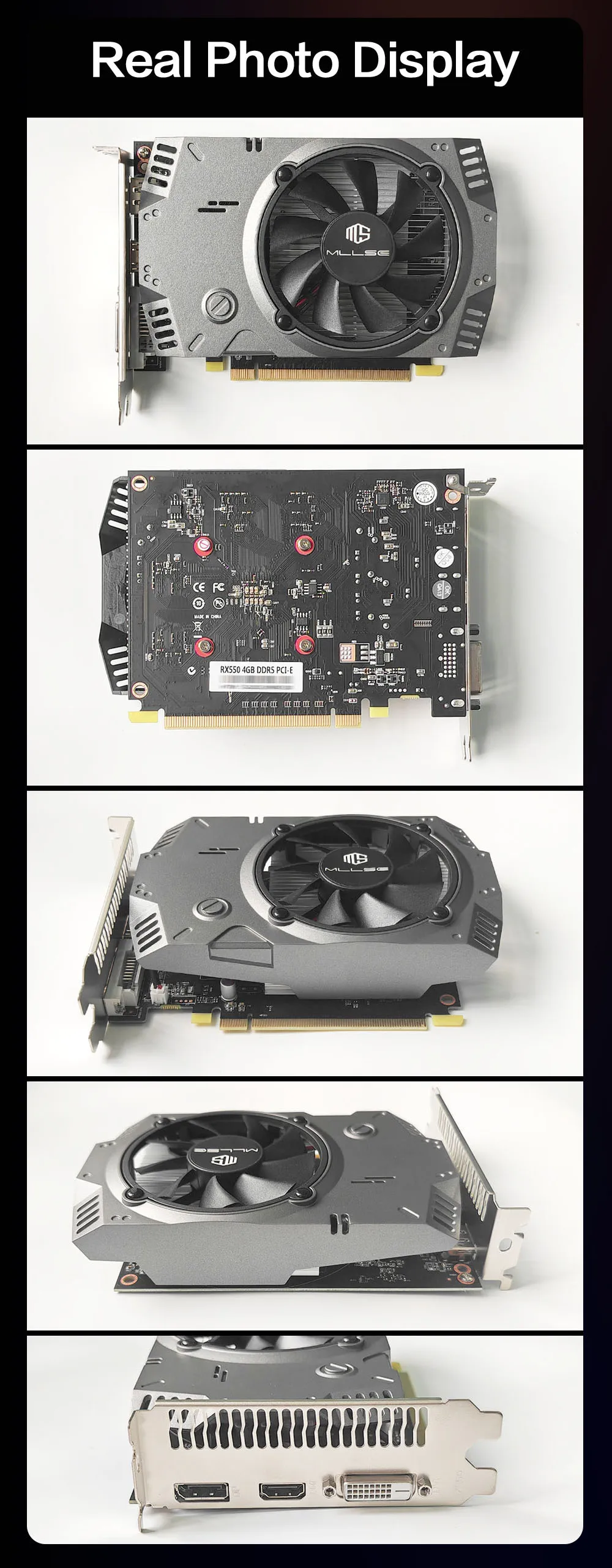 • Poderoso AMD RX 550 Gráficos :Experimente um desempenho de jogo superior com a placa gráfica MLLSE AMD RX 550 4GB. Sua poderosa GPU garante uma operação suave e eficiente, aprimorando sua experiência de jogo.
