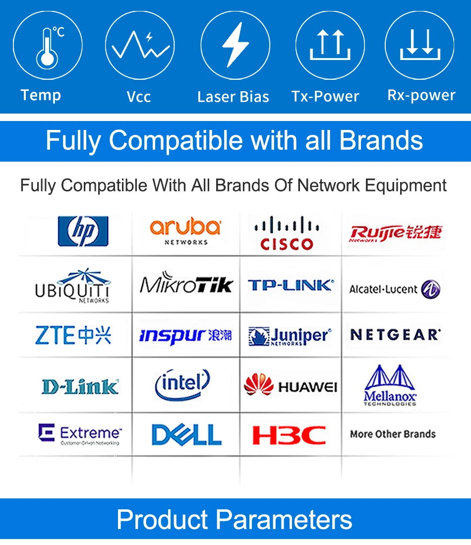 Totalmente compatível com o equipamento de fibra óptica, interruptor de fibra, roteador... Por exemplo: HP ProCurve Série 2910al, HP Série 2530, HP Série 2620, HP Série 2920, HP ProCurve Switch Série 3500yl, JL262A Aruba HPE 2930F Series, Aruba 2930F Series, etc., enquanto disponível de acordo com Seus comentários, Melhorar constantemente o nosso sistema de testes para garantir a compatibilidade total.