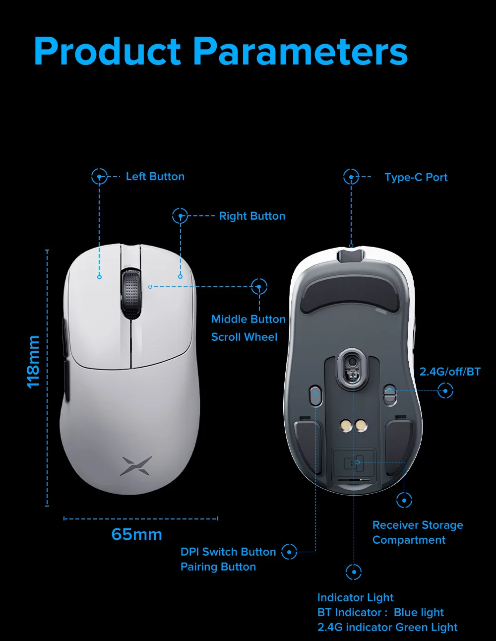 · Connections: 2.4G Wireless / Typc-C Wired / Bluetooth