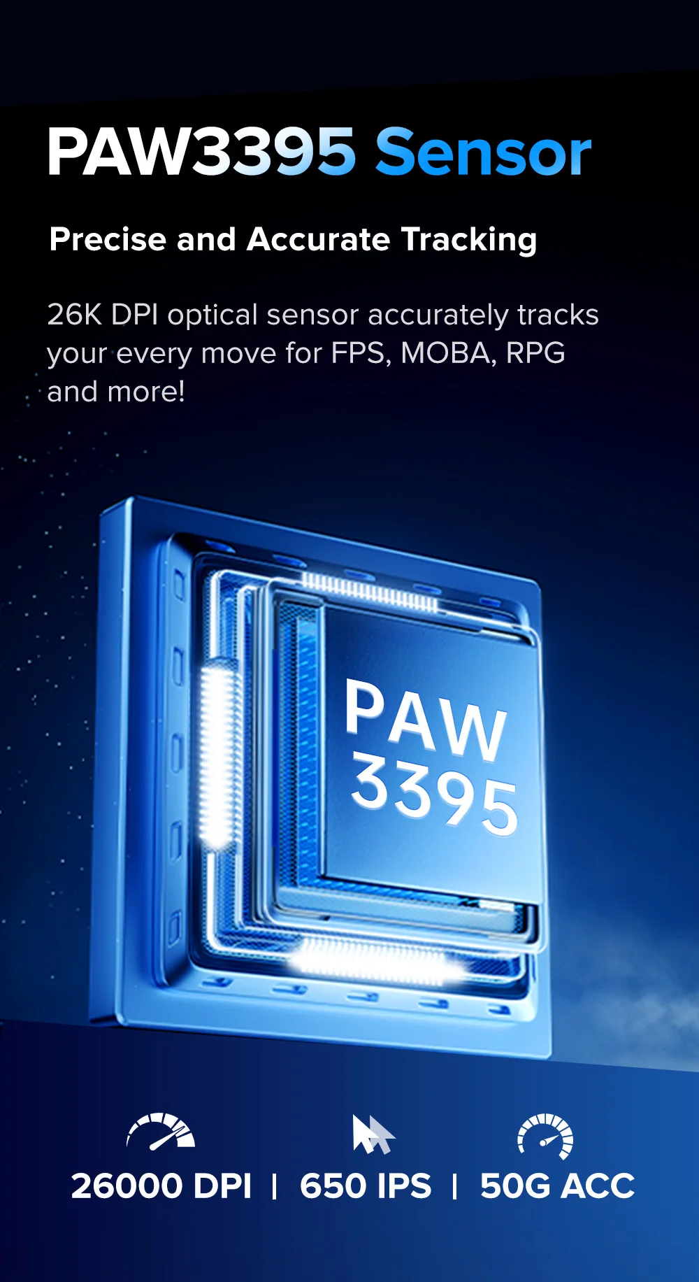 O modelo de Sensor de: Pixart 3395 (26000 DPI | 650 IPS | 50G)