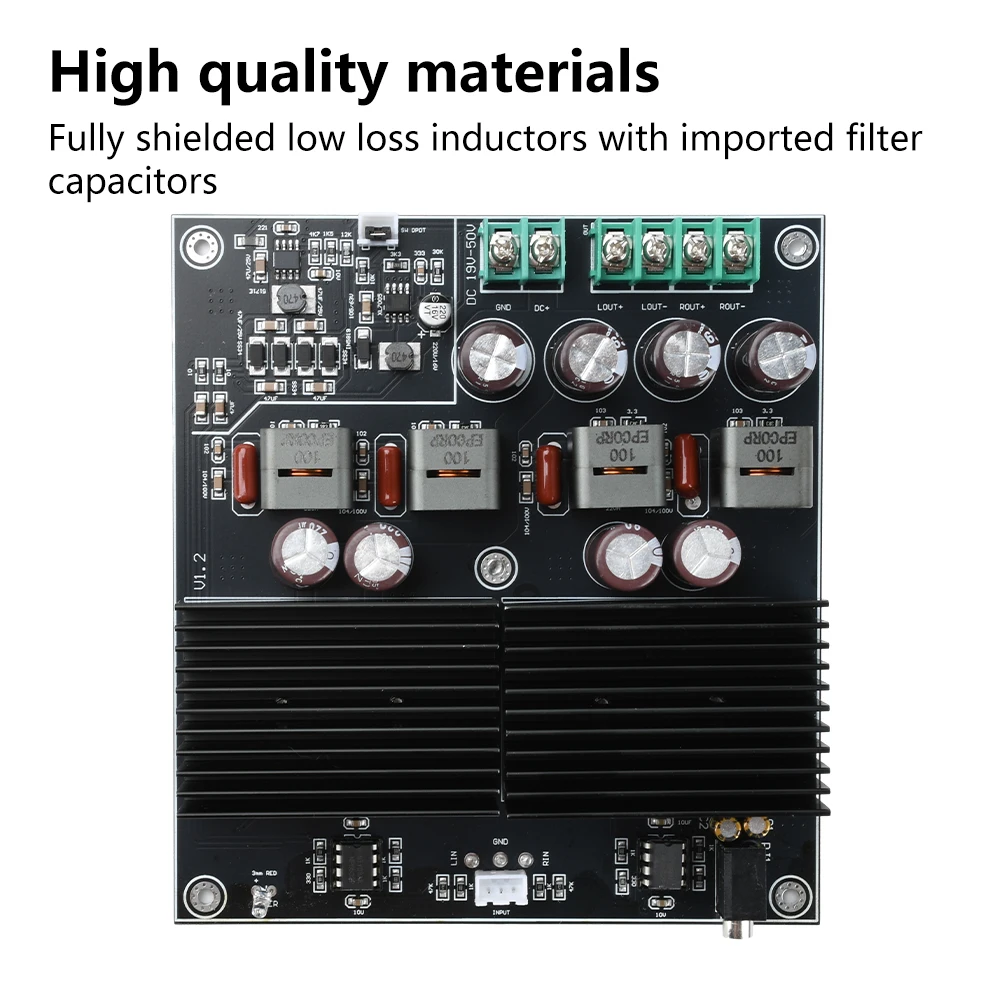 1.Design de chip duplo: TPA3255 é um chip amplificador de potência Classe D de alto desempenho com eficiência Classe D e um circuito que pode trazer uma verdadeira qualidade de som de alta qualidade.