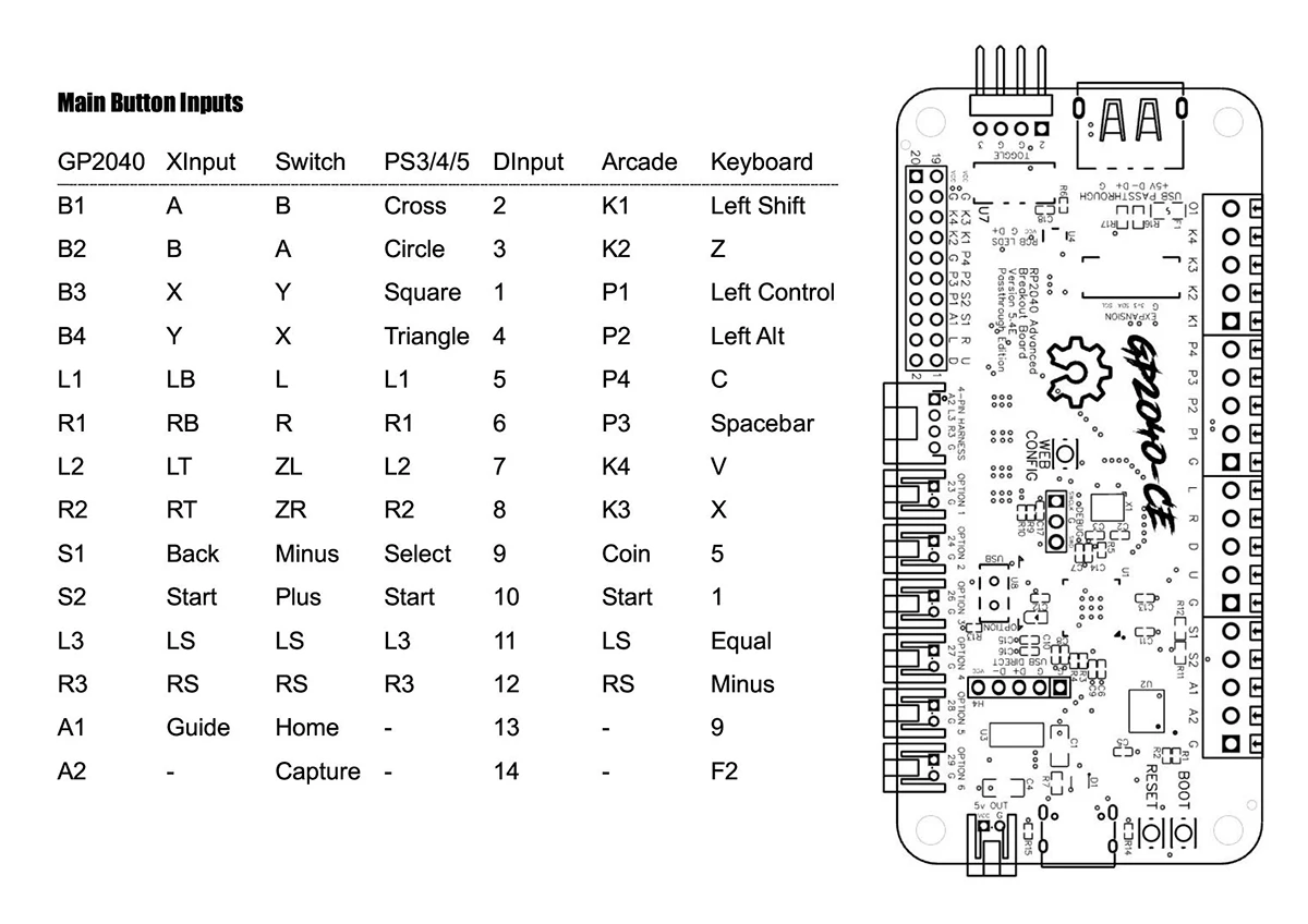 Placa de fuga avançada RP2040 USB Passthrough Edition Raspberry Pi Pico Placa de luta Pico integrada para Arcade Hitbox Mixbox Slimbox DIY Fighing Stick Trabalho para PC PS4 GP2040-CE placa