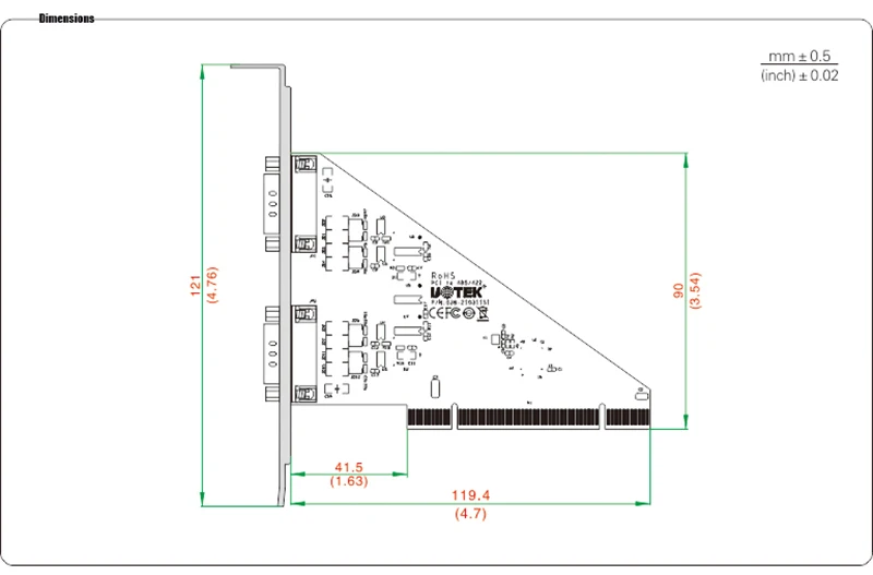 UOTEK Industrial Grade PCI para RS-485 Serial Card 2 Portas RS485 RS422 para Pci Conversor DB9 COM Adaptador RS-422