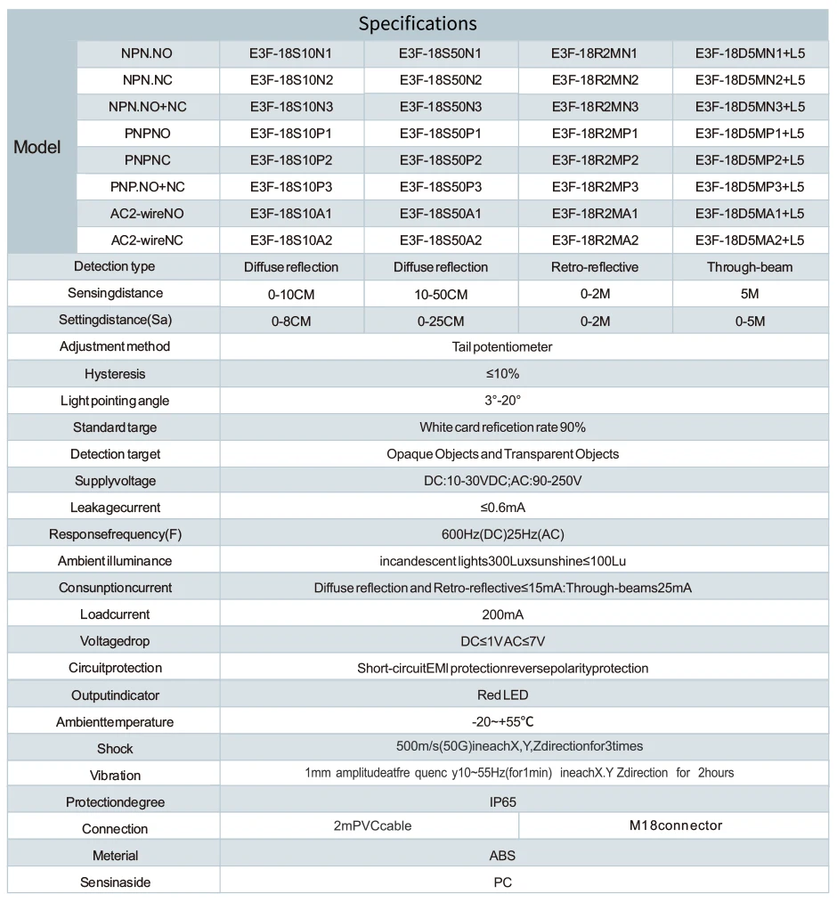 10-30 VDC 3-wries: 600 Hz(DC)/25Hz(AC)