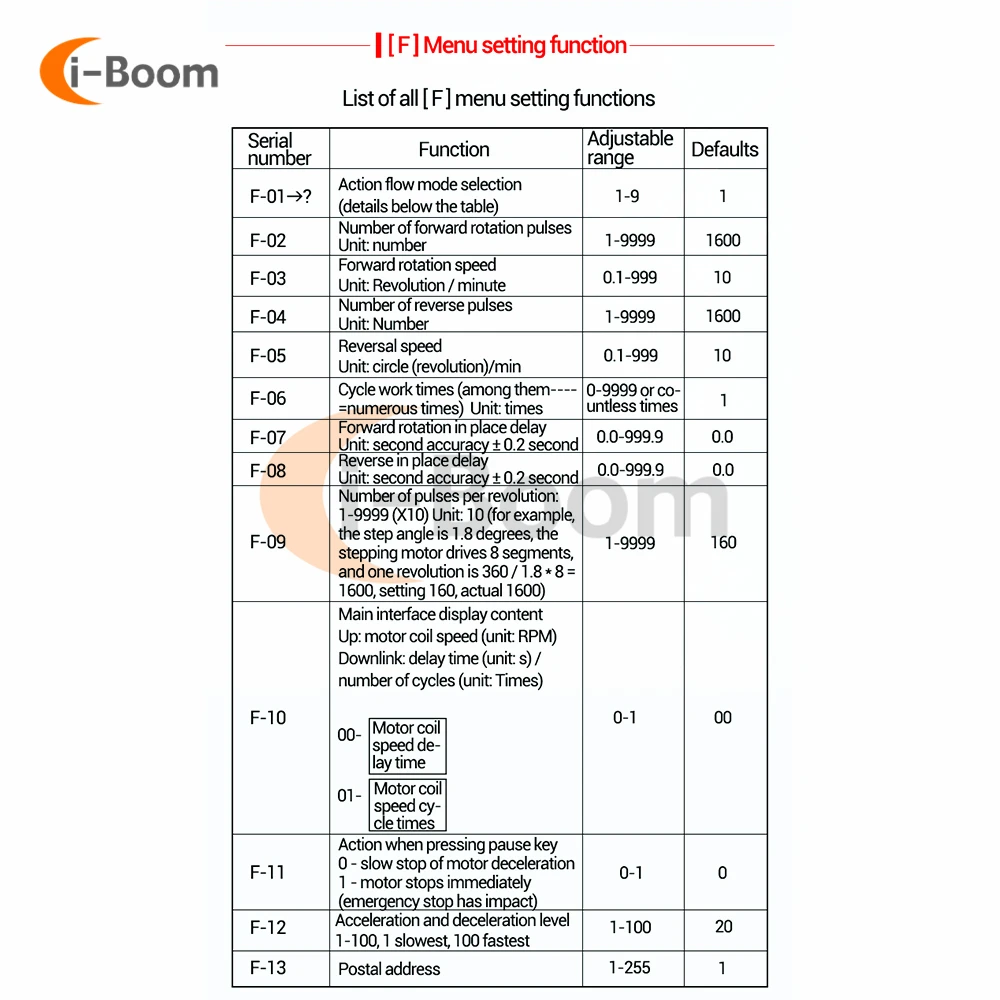 Número de pulsos dianteiros da rotação: 1-9999 pulsos