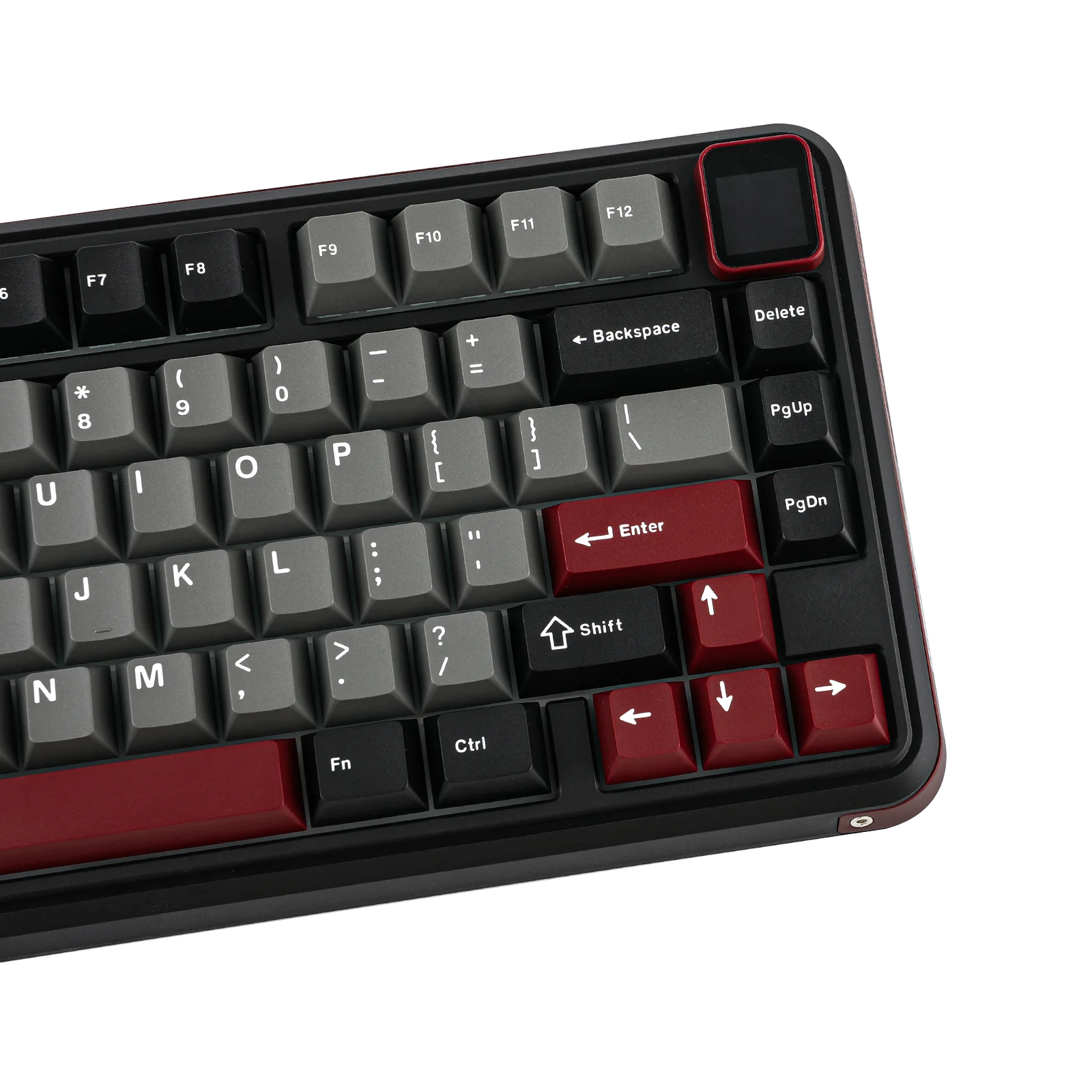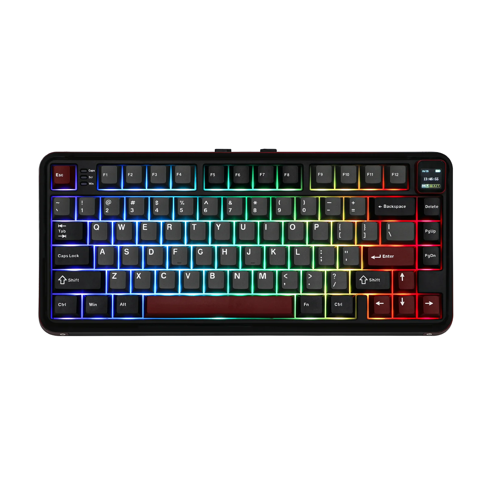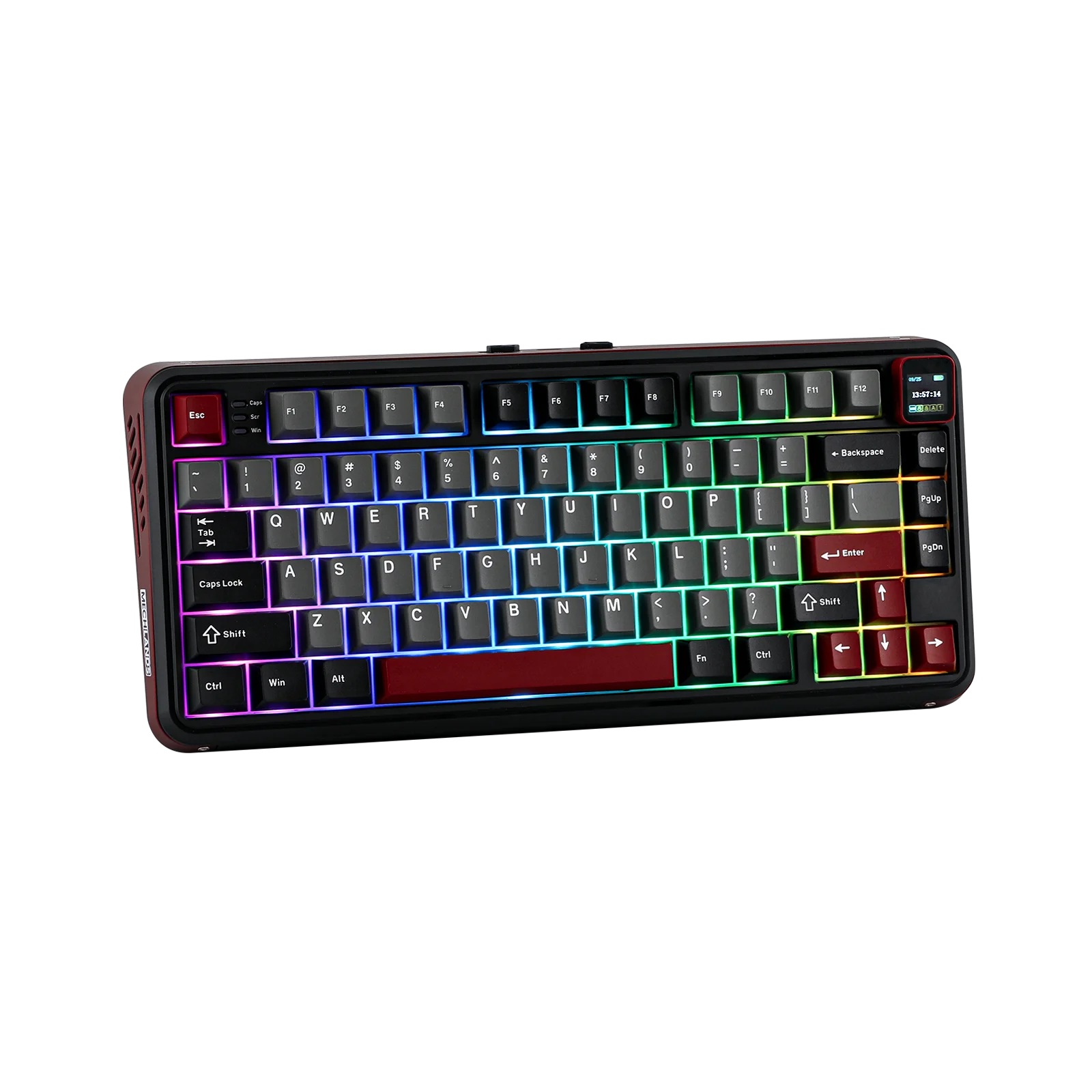 O layout 75% do Vibe75 V2, com 79 teclas + 1 tela, atinge o equilíbrio perfeito entre compactação e usabilidade.Este layout foi projetado para manter todas as teclas essenciais enquanto reduz a pegada do teclado, tornando-o mais portátil e ergonômico, especialmente para jogadores e aqueles que trabalham remotamente.O canto superior direito do teclado é reservado para os módulos de tela, adicionando funcionalidade e um toque estético único.Envolvido em elegantes peças decorativas de metal, o Vibe75 V2 exala uma aparência premium que complementa seus recursos avançados.