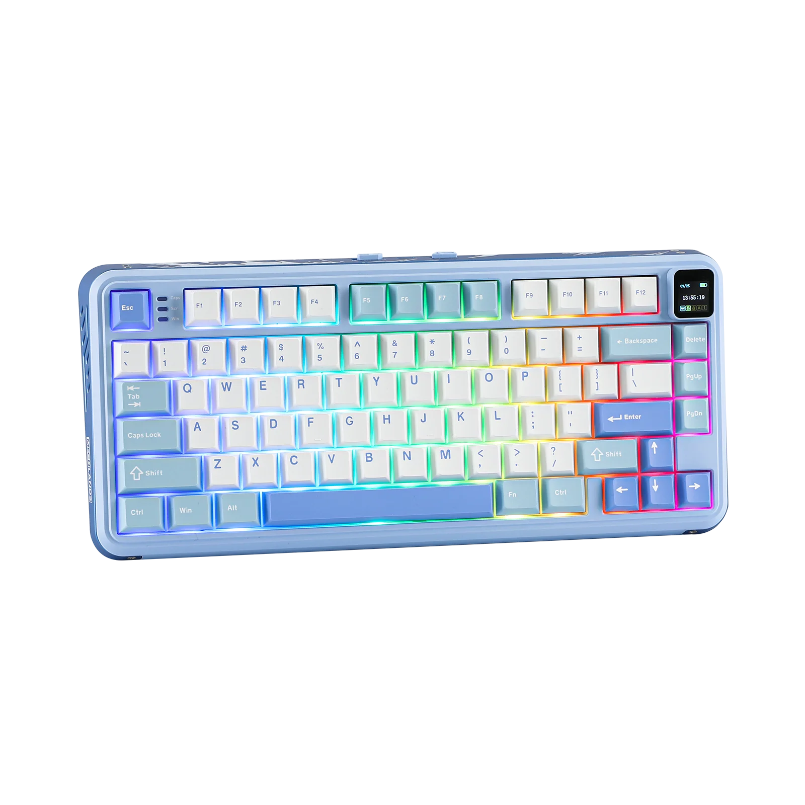 (Sem botão) MechLands Vibe 75 V2 75% Teclado mecânico sem fio hot-swap montado em junta/Bluetooth/2,4 GHz com tela TFT