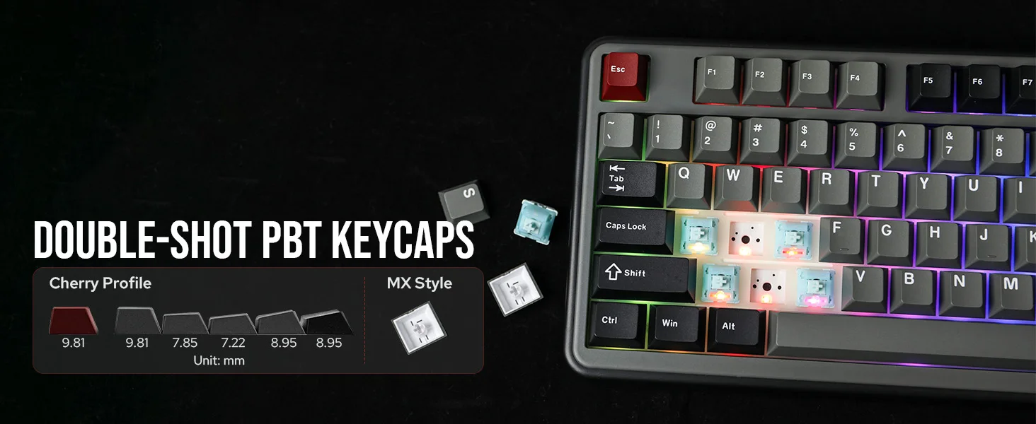 Teclas PBT de disparo duplo com perfil cereja