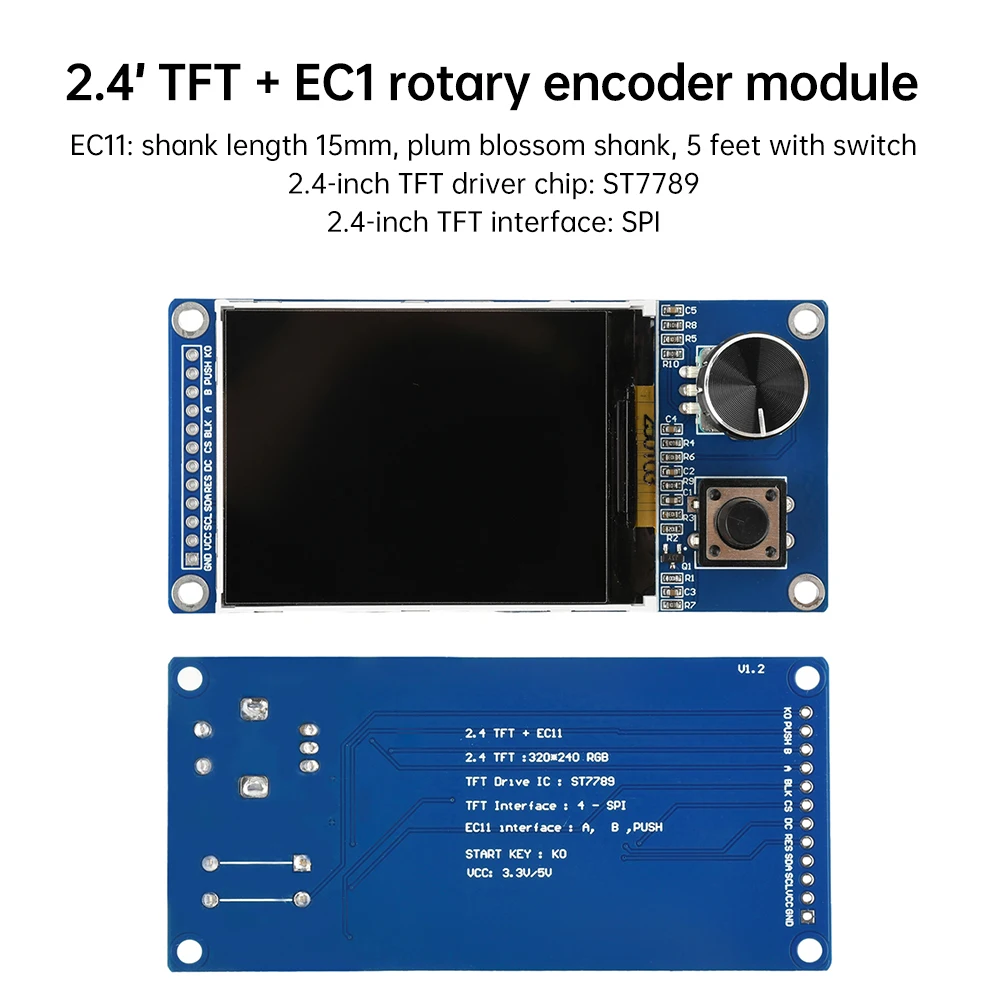 Codificador rotativo TFT + EC11 de 2,4 polegadas: