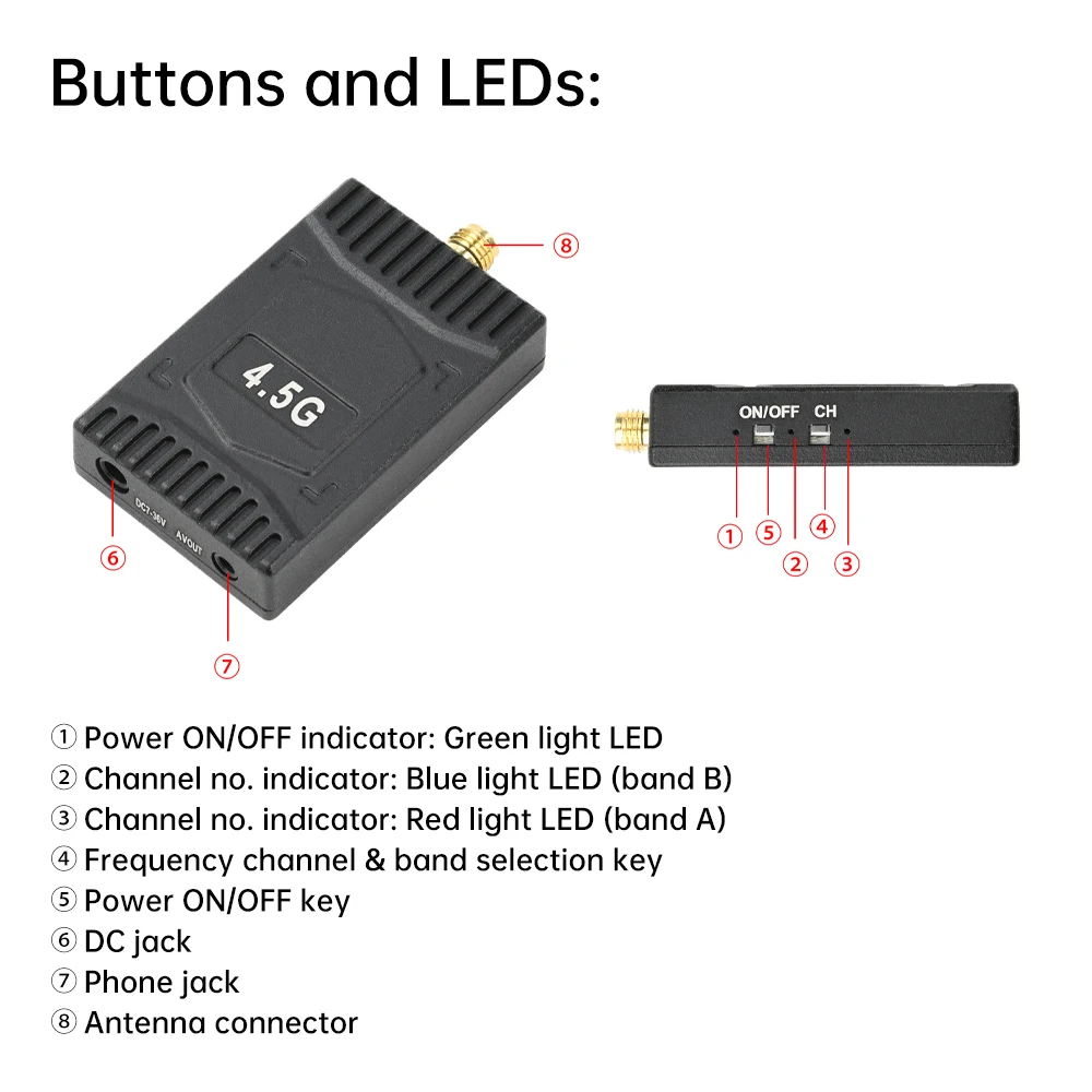 1.4.5GHz professional frequency band, suitable for high-performance FPV equipment, stable and reliable signal
