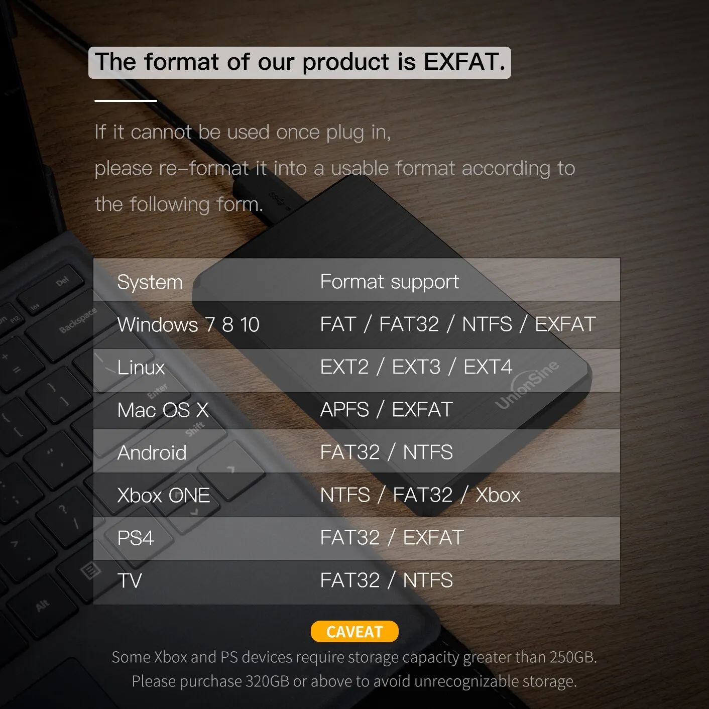 Libere espaço na unidade interna do seu computador para ajudar a melhorar o desempenho, sem ter que se preocupar em ficar sem espaço. Às vezes, adicionar armazenamento extra não é suficiente, você pode precisar levar seus arquivos com você. UnionSinePortable disco rígido externo será uma solução perfeita.