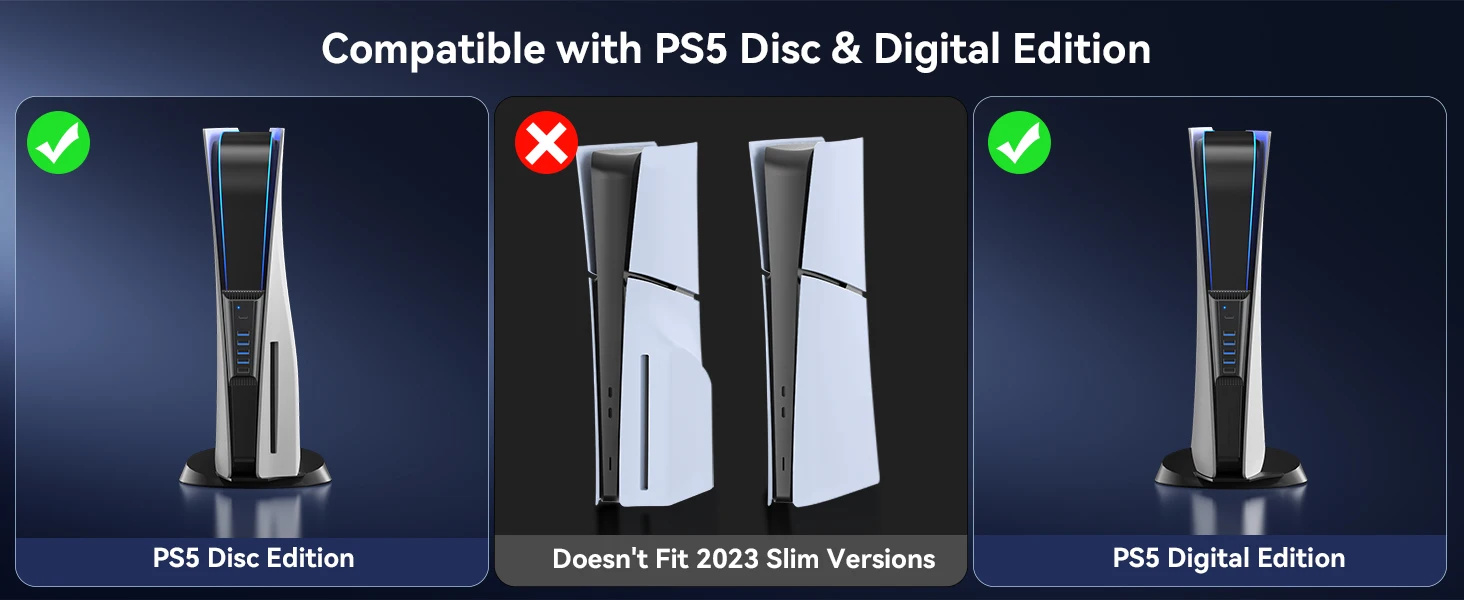 ?Suporte de resfriamento de alta compatibilidade para console PS5?Este ventilador para playstation 5 combina perfeitamente com a edição digital do console PS5 e a versão em disco. Se o console é colocado horizontalmente ou verticalmente não afetará o uso normal. Mas não importa onde seja colocado, mantenha a parte traseira do console para deixar um pouco de espaço para não afetar a dissipação. PARA PS5, o sistema de refrigeração possui design leve e elegante, que não ocupa espaço. Um presente mais legal de acessórios perfeito para jogadores de PS5!